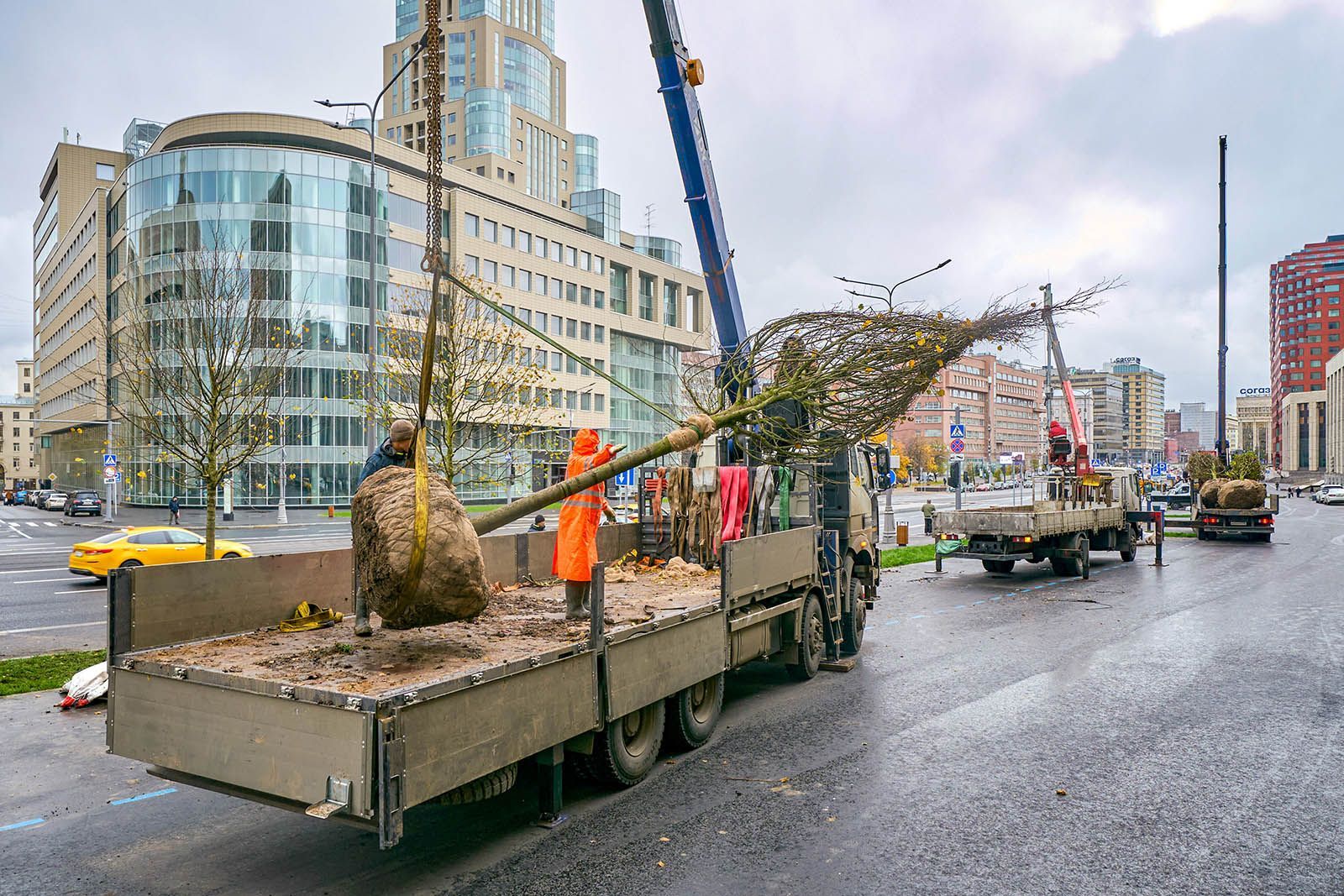 Для украшения московских улиц деревья берутся из специализированных питомников и специально подготавливаются к пересадке. Крупные деревья высаживаются в подготовленные ямы с плодородной землей и дренажным слоем, который защищает корни от гниения и обеспечивает необходимый отток лишней влаги.