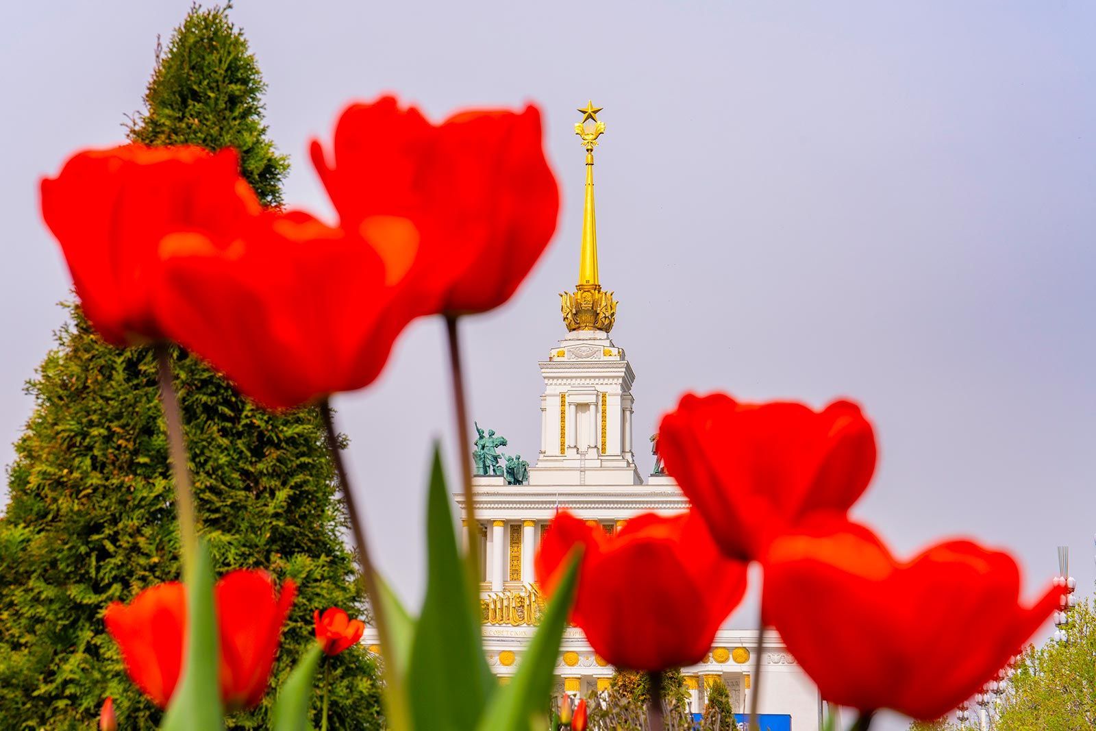 Последние весенние цветы, которые появляются на ВДНХ, — это махровые тюльпаны в парке «Останкино». Тут можно увидеть различные оттенки: от белого и розового до ярко-жёлтого и темно-фиолетового.