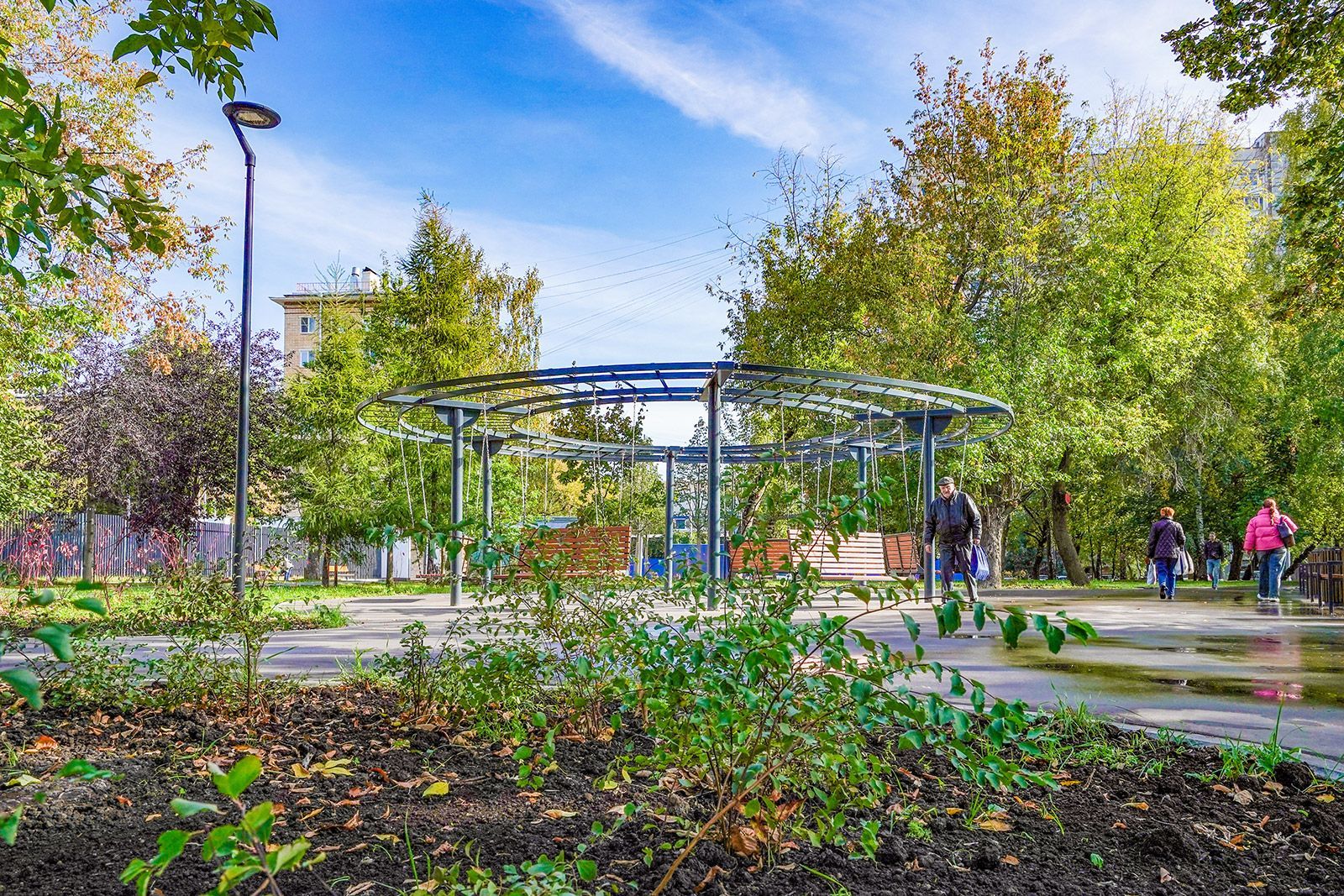 В Москве специалисты комплекса городского хозяйства полностью обновили парк: заменены скамейки, установлена пергола с качелями. Также был проведен ремонт дорожек и монтаж современных опор для освещения. На территории парка высадили деревья и другие многолетние растения.