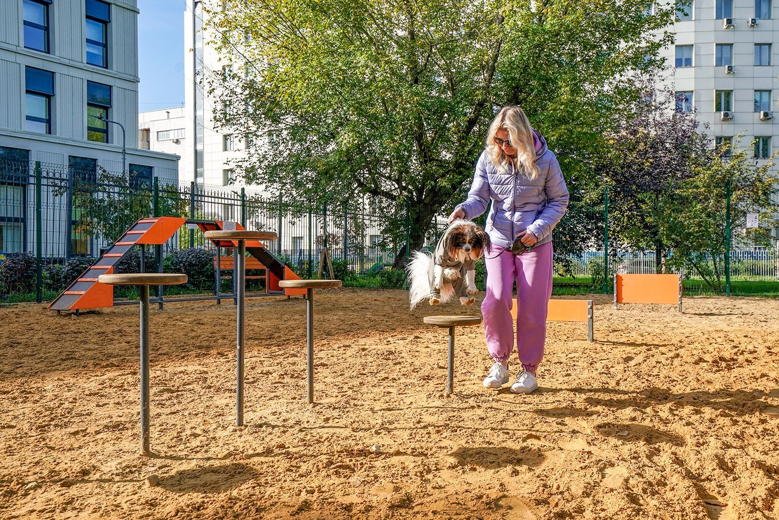 Для посетителей с питомцами модернизирована площадка для выгула собак, где установлены современные снаряды: бум, кольца и барьеры.