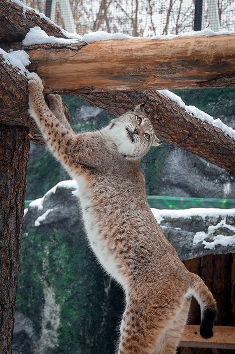 Московский зоопарк на протяжении своей истории всегда содержал этих удивительных кошек, которые неизменно привлекают посетителей. Рыси легко узнаваемы среди других диких кошек благодаря своей необычной внешности. За грациозными хищниками интересно наблюдать как в моменты, когда они уютно свернулись клубочком на солнце, так и в период их активности в вольере.