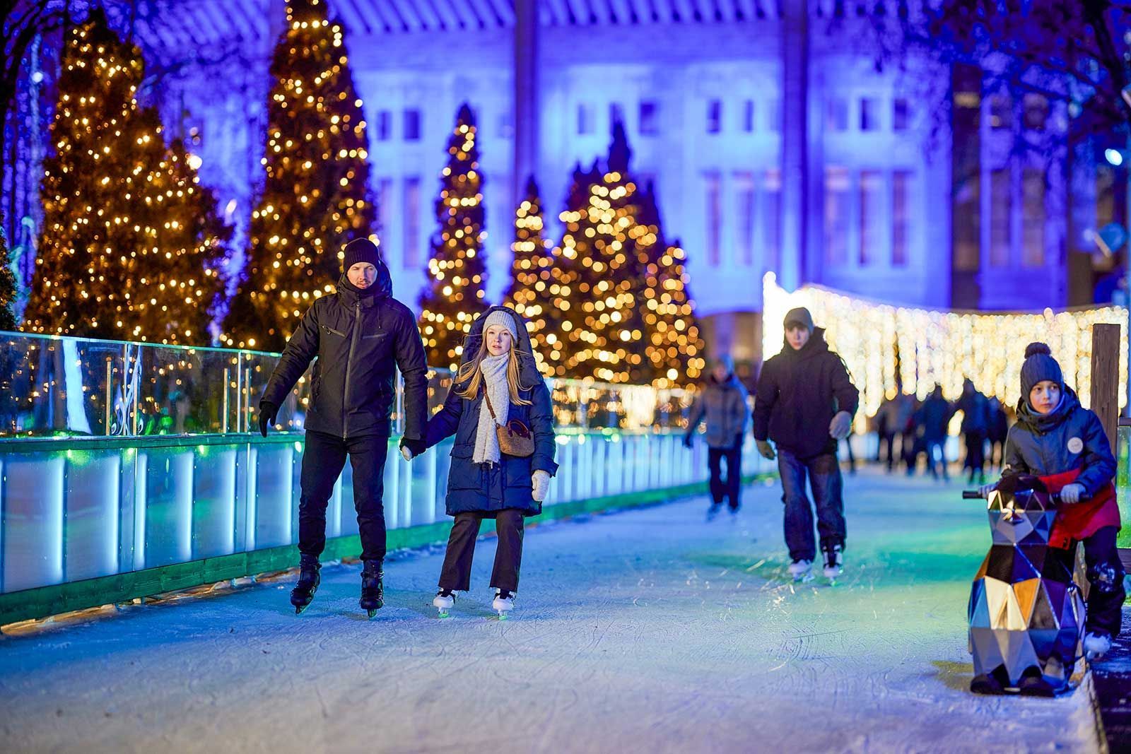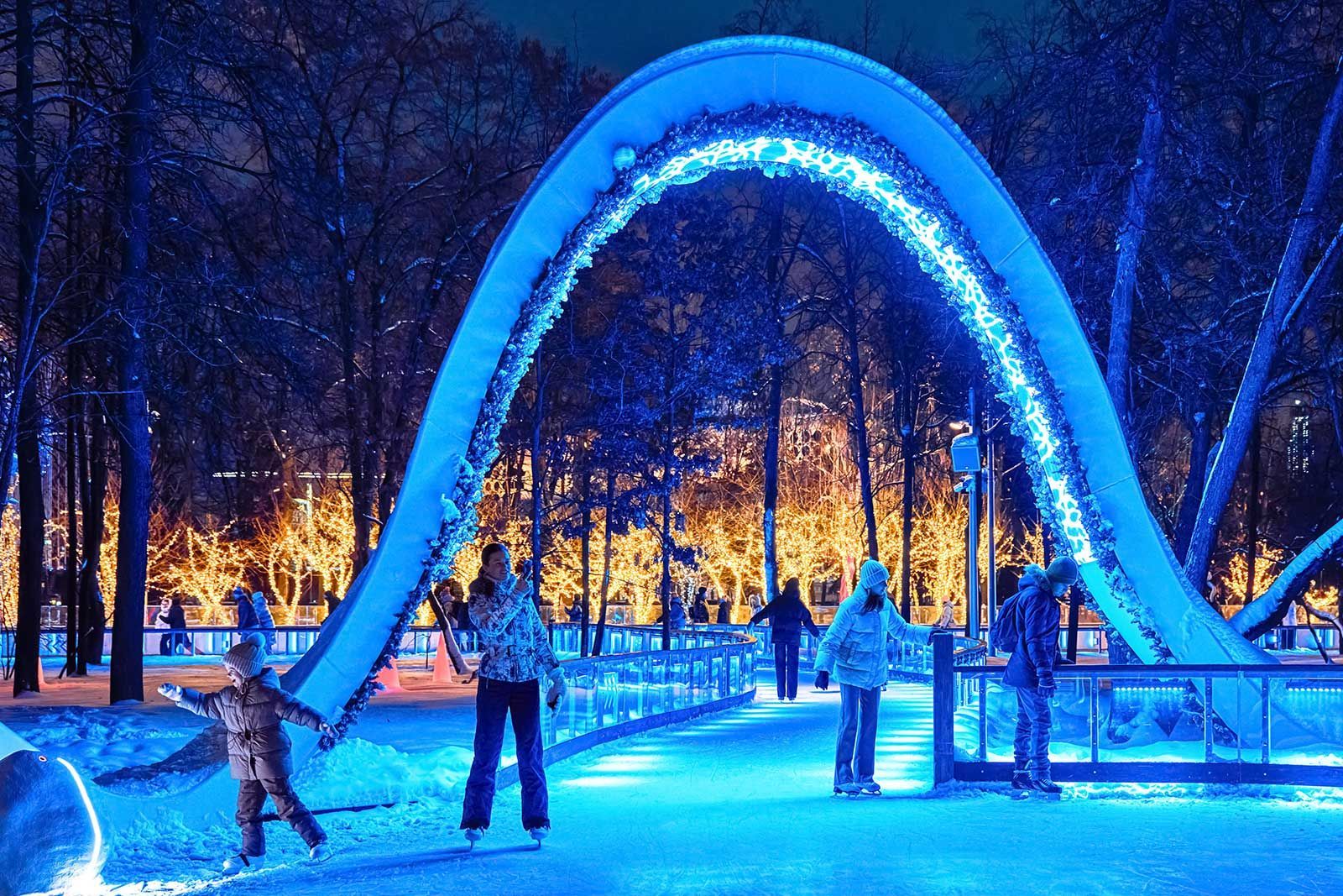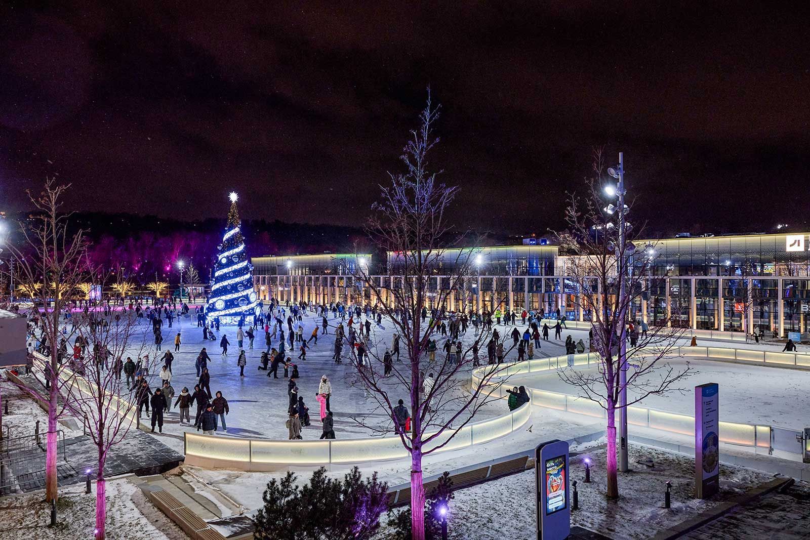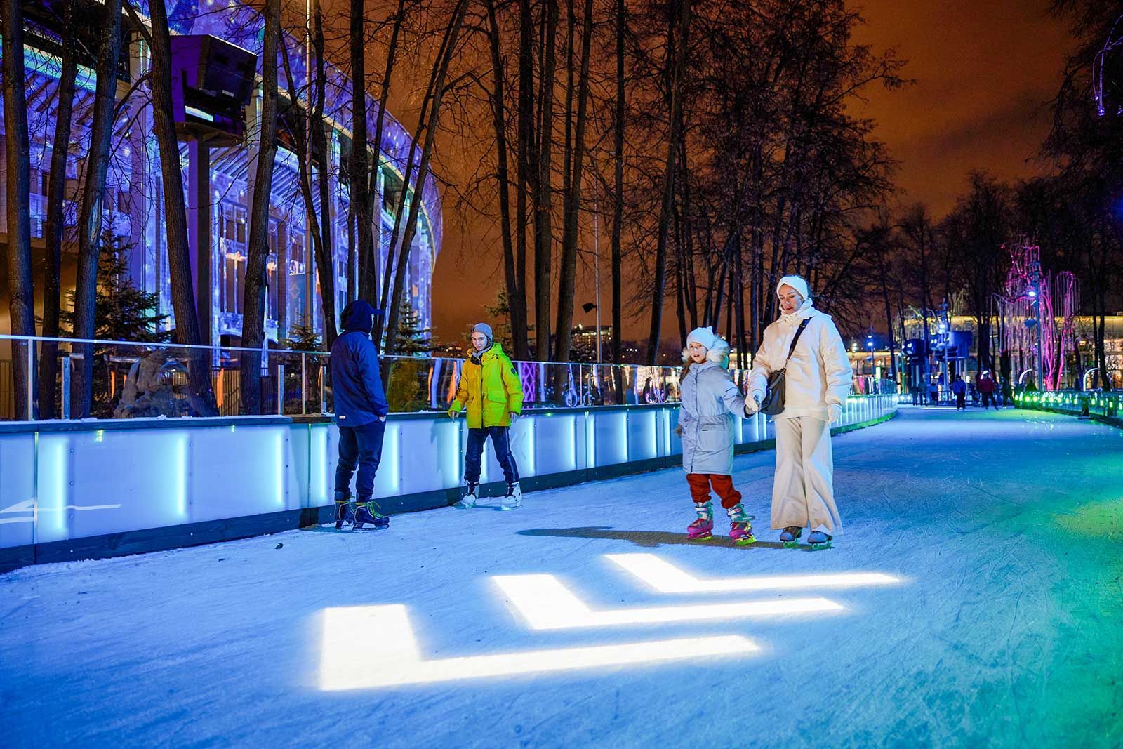 Зимой здесь начал функционировать новый мультимедийный каток. Это одна из крупнейших площадок для катания на коньках в столице, раскинувшаяся на 16,5 тысячи кв. метров. На льду перед Большой спортивной ареной и примыкающих аллеях одновременно могут кататься до трех тысяч человек.