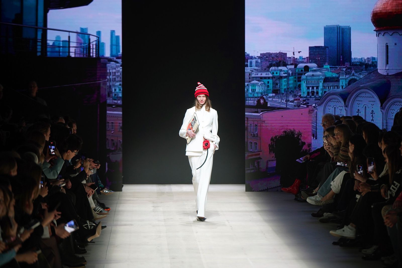 Каждый образ показа объединяет тема «Один день из жизни в Москве». Модели представили наряды, отражающие их повседневный распорядок. В коллекции представлена одежда для прогулок с собакой, сопровождения ребёнка в школу или детсад, работы, встречи с друзьями, вечерних мероприятий и особых случаев. Для создания аутентичной атмосферы стилисты дополнили образы узнаваемыми аксессуарами: чашкой кофе, наушниками, телефоном, ковриком для йоги и другими.