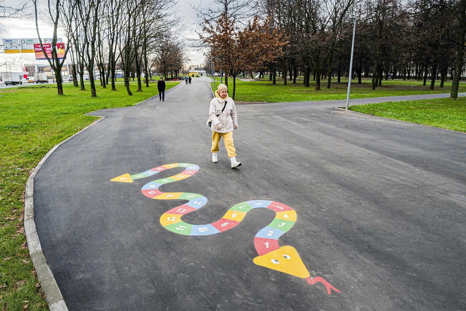 Инновационным подходом в области городского благоустройства стали импровизированные игровые зоны, организованные прямо на асфальте. Эти игровые площадки, выполненные из штучных форм термопластика на тротуарах, привлекают интерес детей всех возрастов.