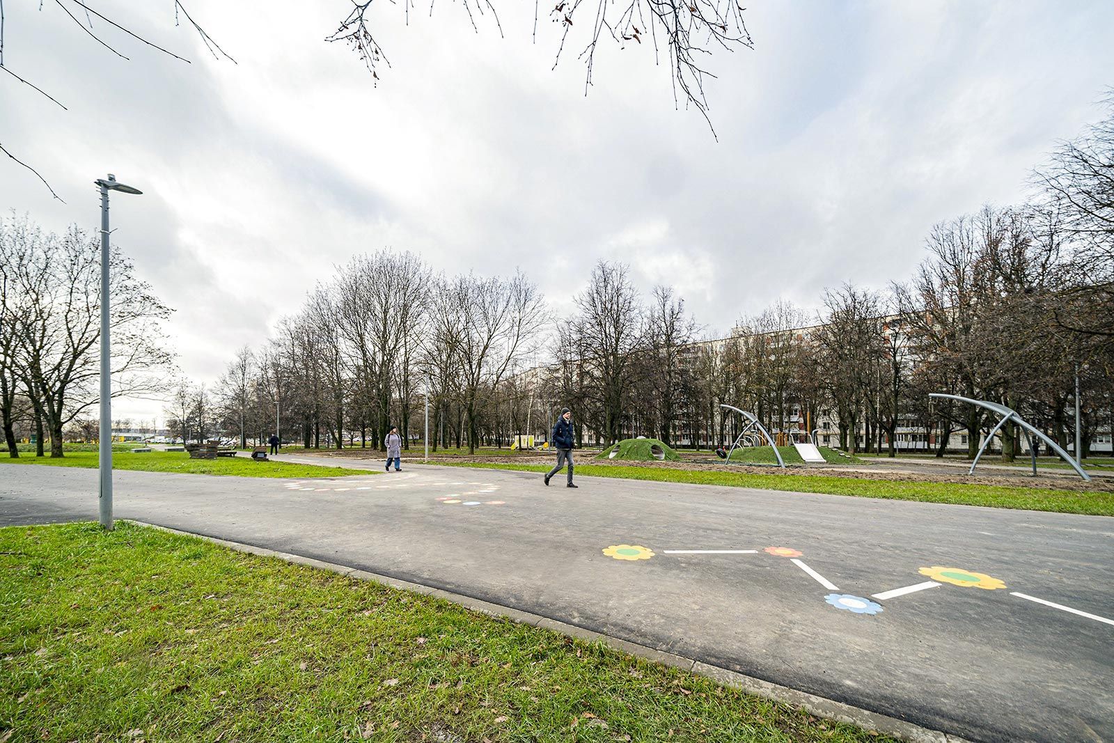 В зеленой зоне 5-го микрорайона появились забавные «прыгалки», оформленные как лягушка, заяц, гепард, антилопа и кенгуру. Дети могут придумывать различные сценарии игр и соревноваться в дальности прыжков.