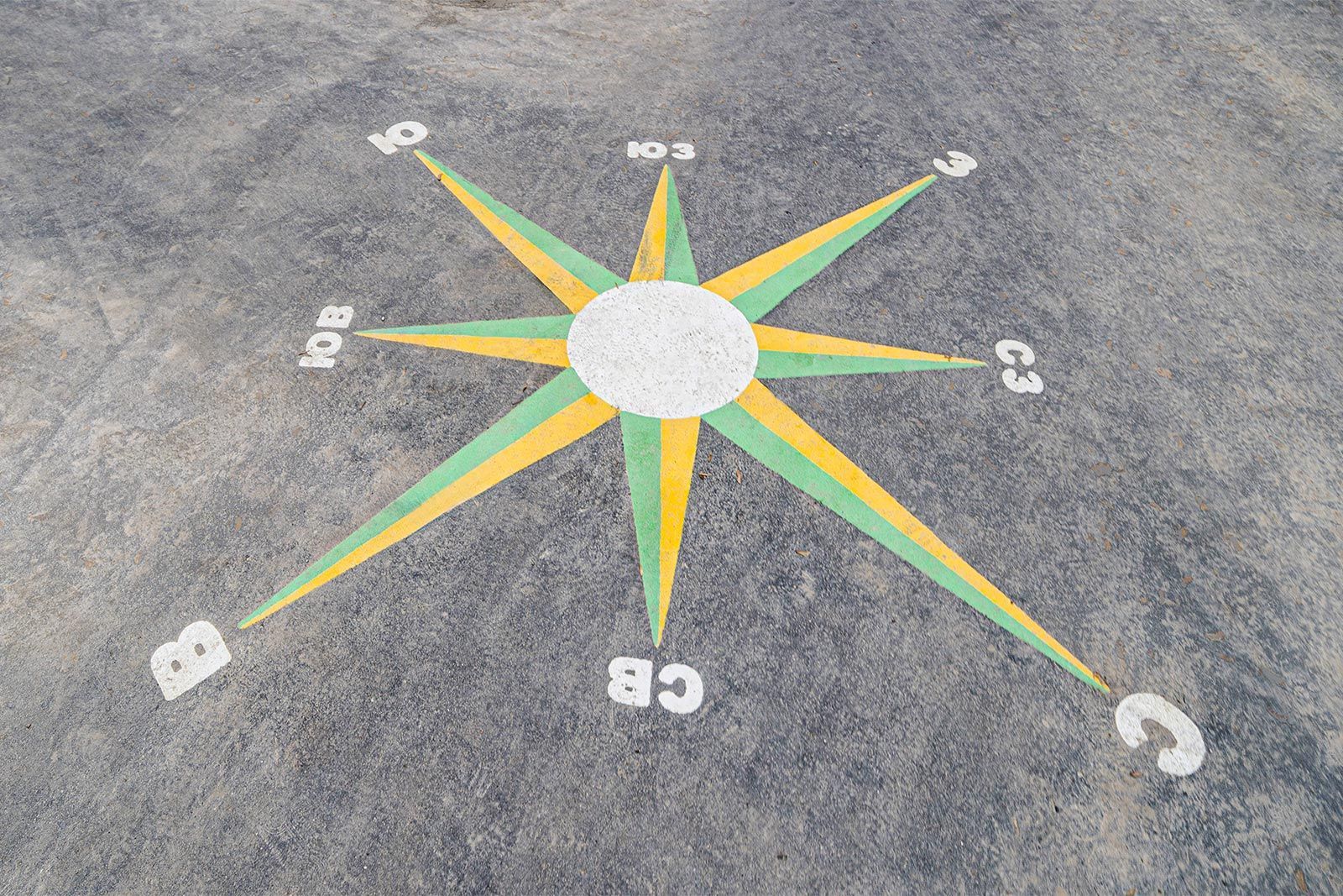 Другие дорожки украшают змейки с цифрами и алфавитом, разноцветные цветики-семицветики, компас, звездочки, солнышко, классики и следы для прыжков с поворотом. Также представлены длинные маршруты, где сочетаются различные элементы для игр.