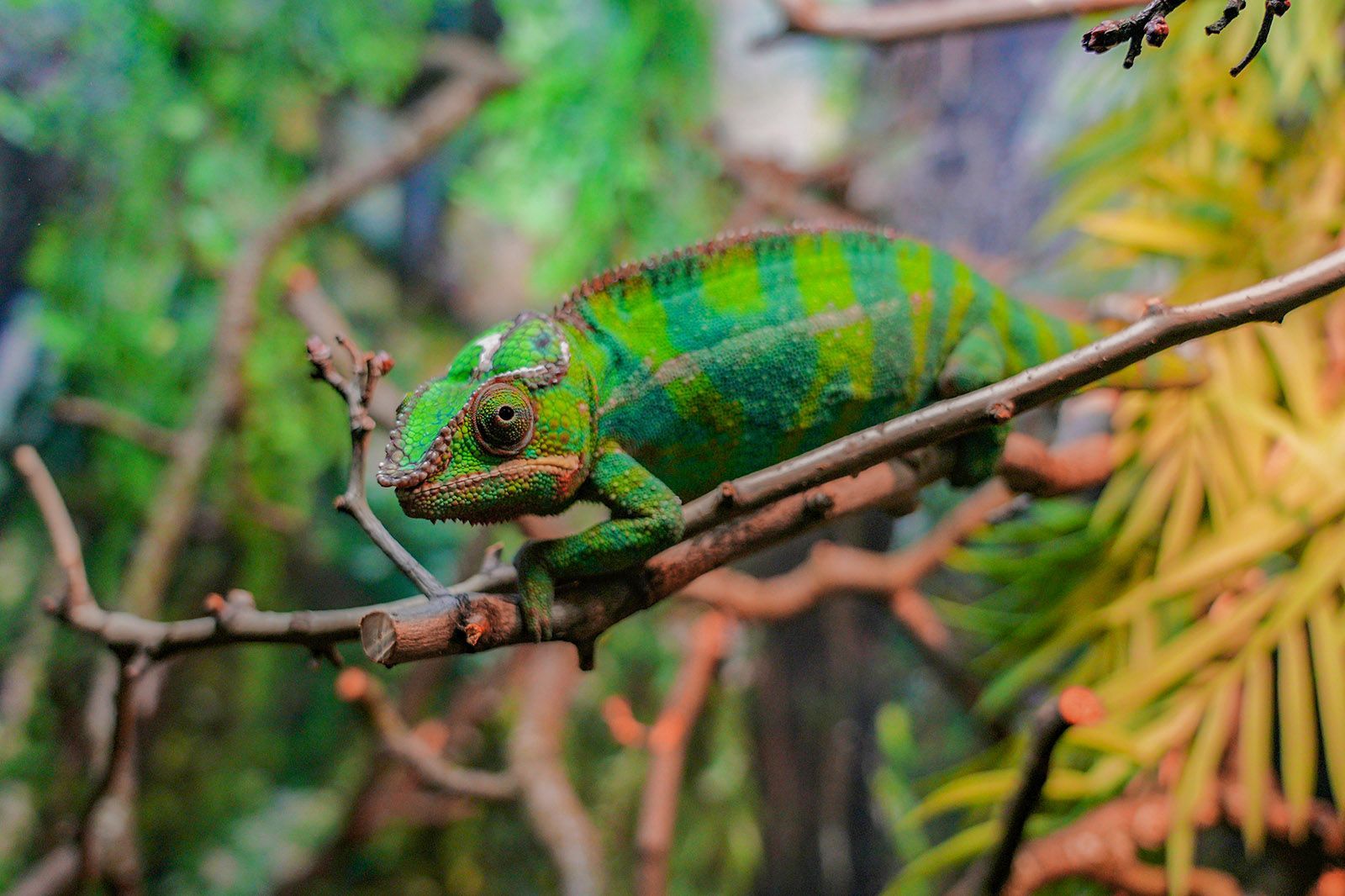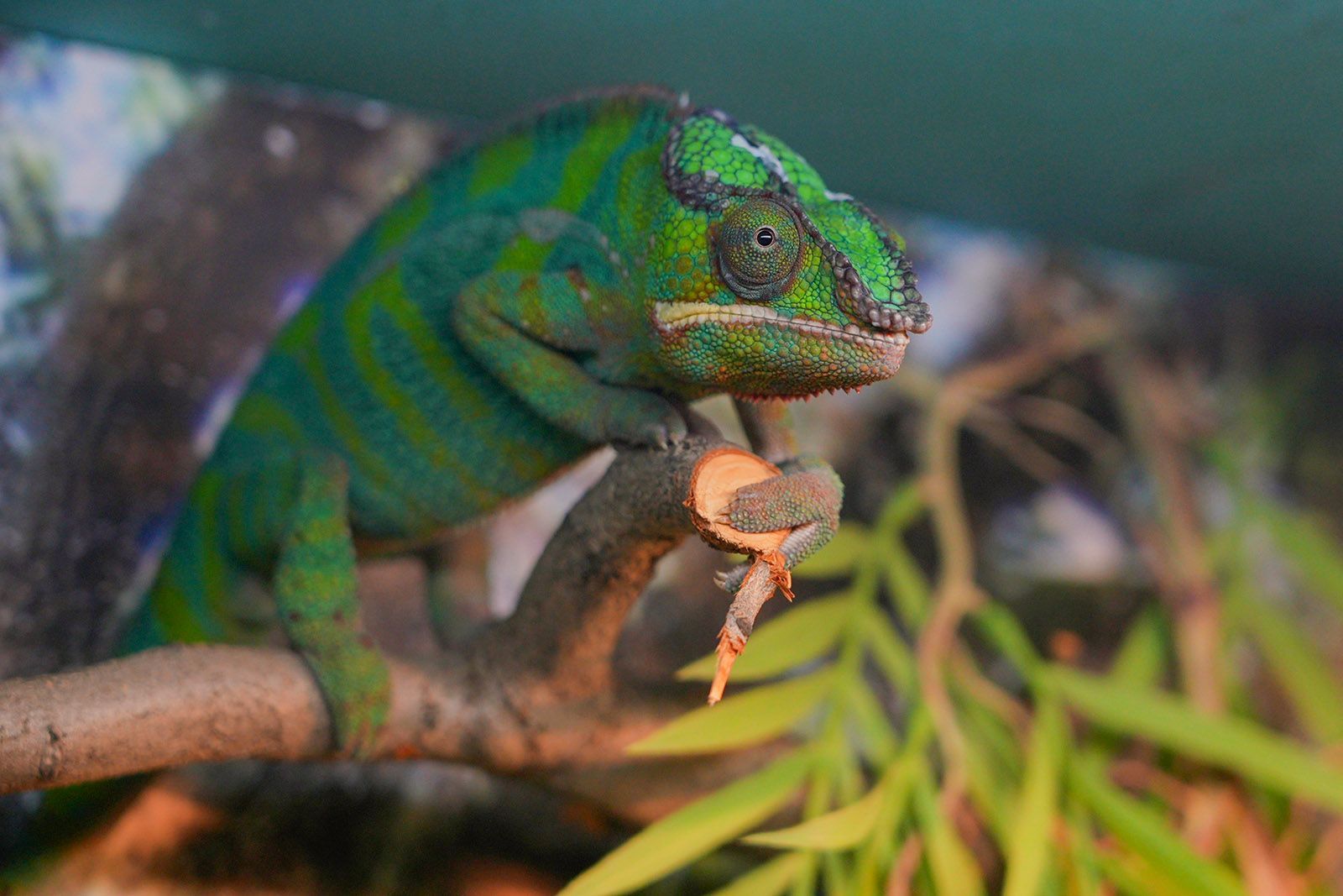 В зоопарке также поселился самец пантерового хамелеона, его можно увидеть на выставке «Удивительный мир рептилий» на старой территории. Самец и его партнерша прибыли в зоопарк летом прошлого года.