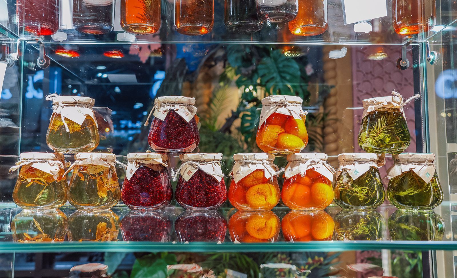 На прилавках межрегиональной ярмарки на Семеновской площади и в сквере на улице Хачатуряна можно найти необычное варенье из сосновых шишек, приготовленное из молодых шишек. Оно отличается густым сиропом и хвойным ароматом. В ассортименте также есть варенье из голубики, ежевики и черной смородины.