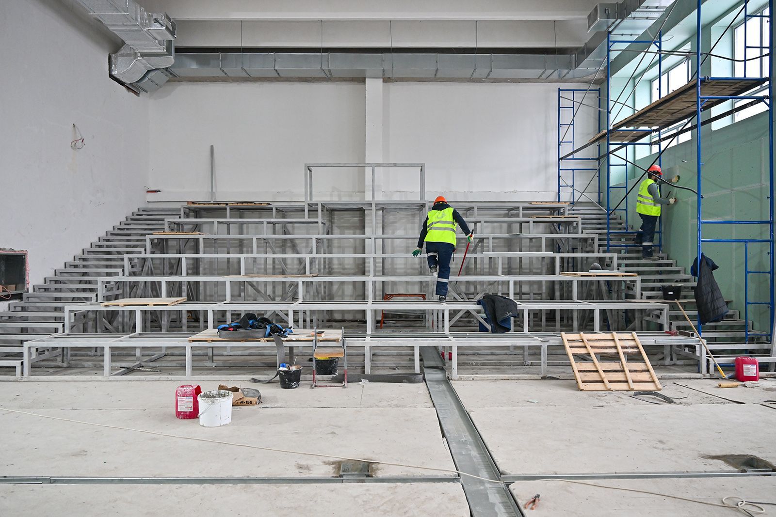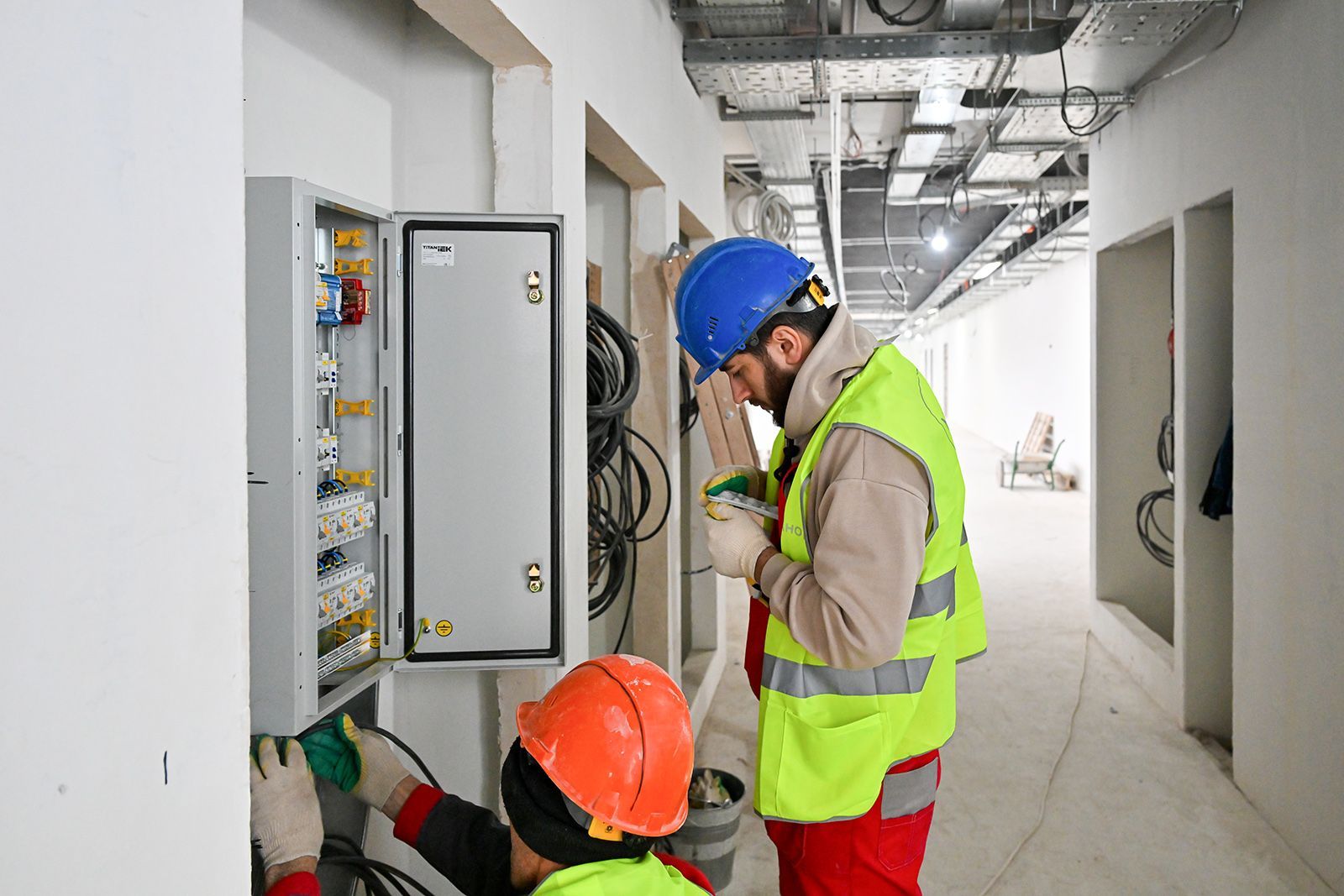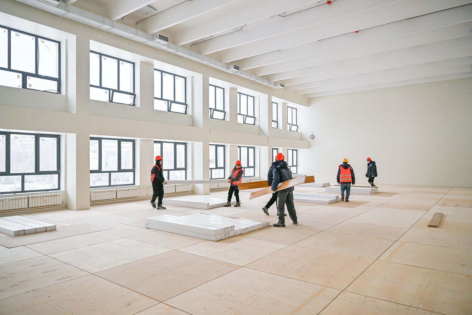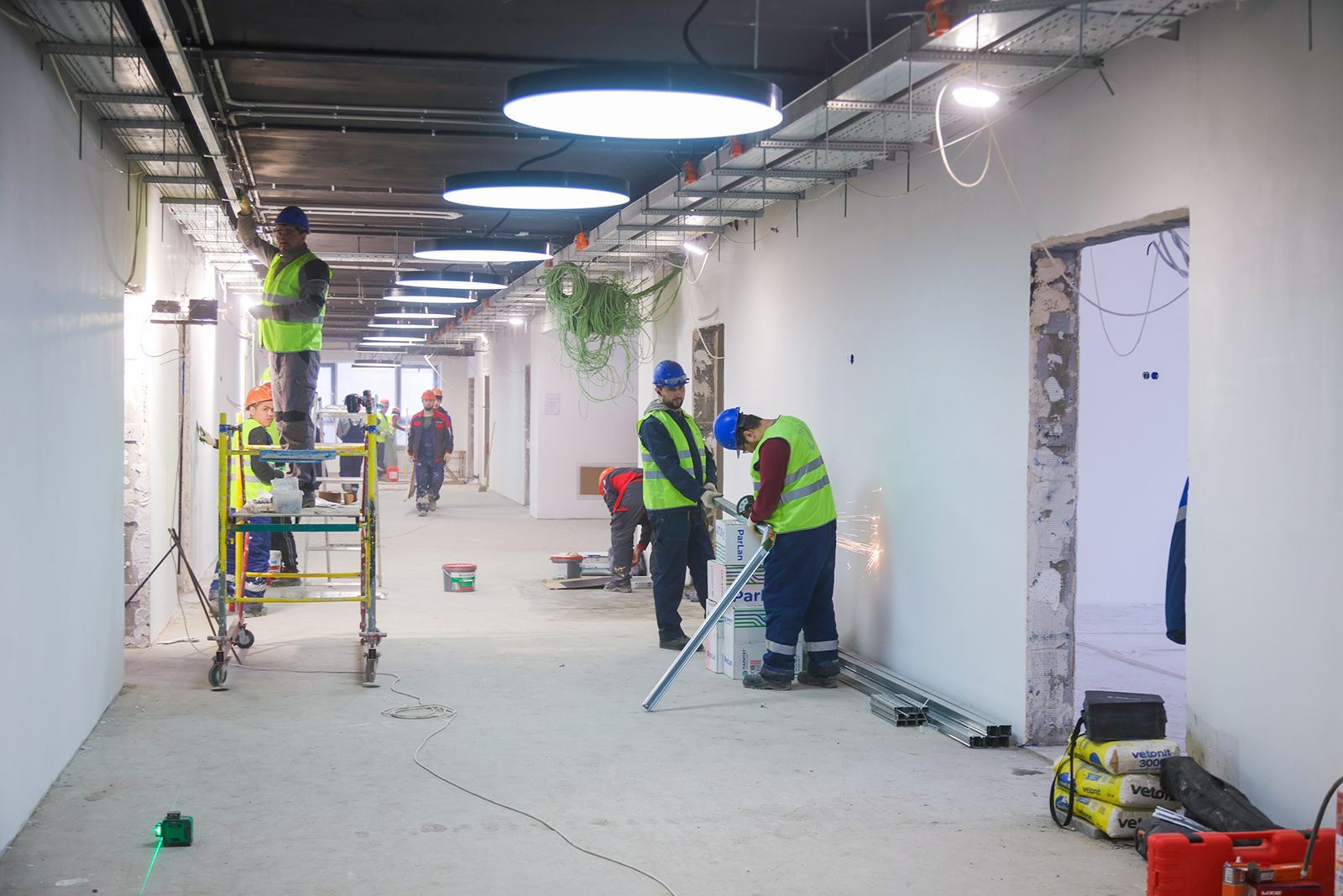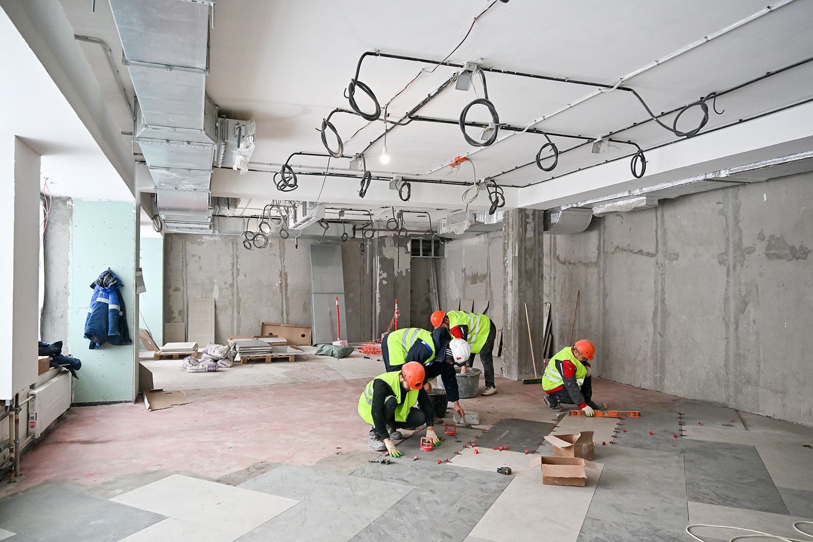 Строители приступают к монтажу внутренних инженерных сетей. Полностью модернизируются системы вентиляции и кондиционирования, водоснабжения и водоотведения, электроснабжения, а также слаботочные сети. Вместо чугунных батарей устанавливаются энергоэффективные радиаторы с регулируемой температурой. В кабинетах прокладывается современная вентиляция, проводной интернет и Wi-Fi, а также слаботочные сети для систем пожарной безопасности, видеонаблюдения и контроля доступа.