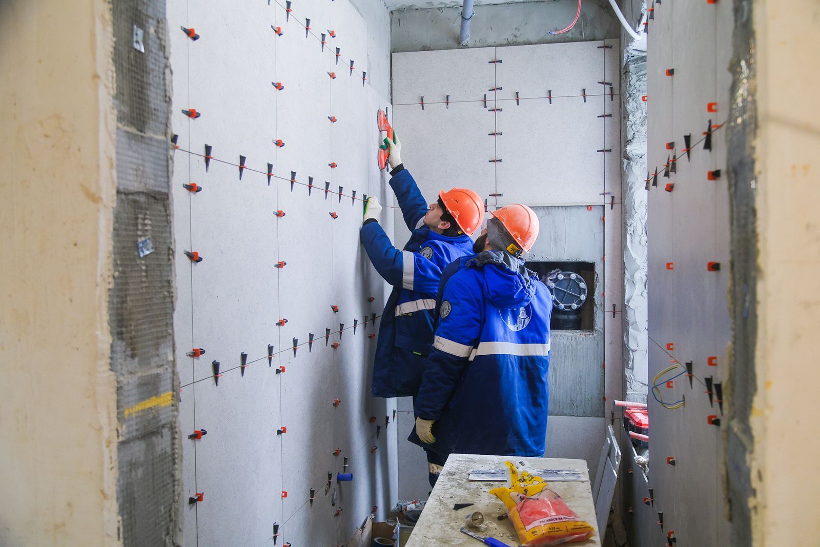 В настоящее время в девяти корпусах завершены работы по демонтажу, устройству перекрытий, стяжке пола, усилению дверных проемов, возведению стен и перегородок, монтажу окон, штукатурке и шпаклевке. Также закончены фасадные работы: устройство утепления, армированного базового слоя штукатурки, укладка нижнего защитного слоя кровли.
