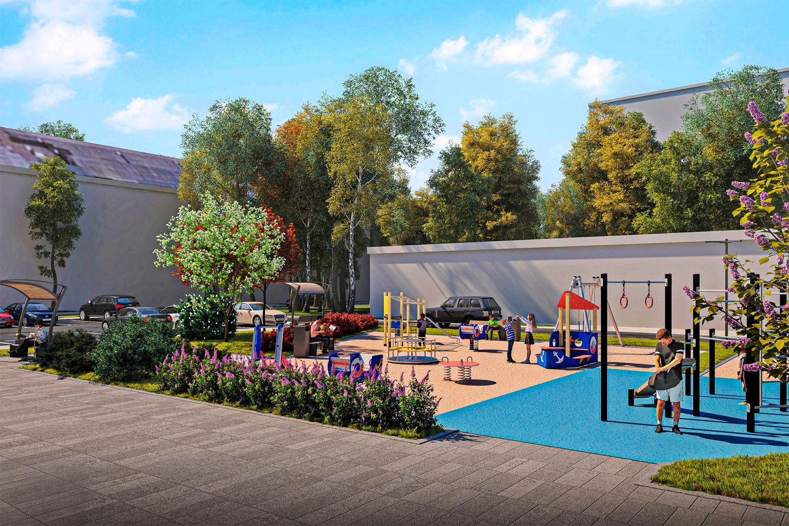 «Во внутреннем дворе новостройки создадут комфортную общественную зону, которая станет центром притяжения для жильцов. Здесь на безопасном прорезиненном покрытии оборудуют детскую площадку и зону для занятий спортом, а еще обустроят место для спокойного отдыха. Также в рамках благоустройства сделают новые тротуары и создадут безбарьерную среду с удобными входными группами», — сообщил глава Московского фонда реновации жилой застройки Максим Степанов.
