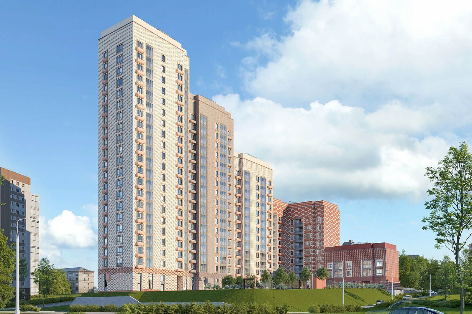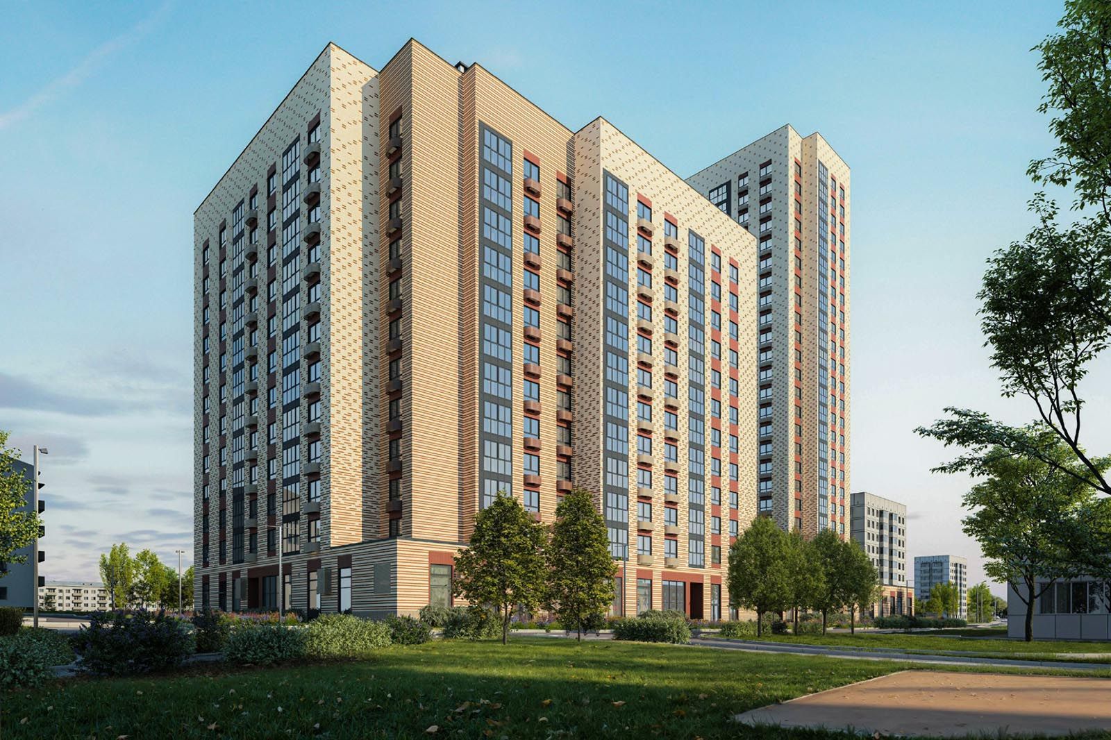 Новостройки под программу реновации строятся из высококачественных материалов с применением энергоэффективных технологий. Для фасадов предусмотрены индивидуальные проекты, учитывающие архитектурные особенности местности, что способствует гармоничному встраиванию комплексов в городской ландшафт.