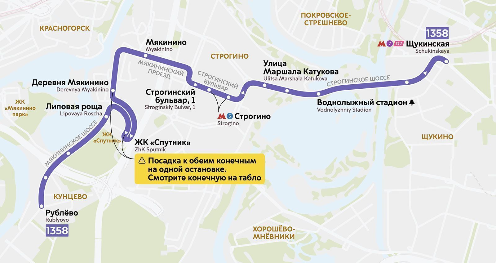 На маршрутах № 1358 и 1594 действует фиксированный тариф. Карту необходимо прикладывать только при входе. Поездка по карте «Тройка» на маршруте № 1358 обойдется в 77 рублей, а на маршруте № 1594 — в 140 рублей. При оплате банковской картой поездка на маршруте № 1358 стоит 78 рублей, а на маршруте № 1594 — 141 рубль.