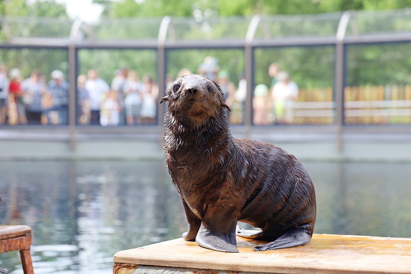 В павильоне «Ластоногие» произошло долгожданное событие: родился детеныш морского котика. Первые недели жизни он провел вместе с матерью во внутреннем бассейне. Через месяц его начали выпускать в большой 3,5-метровый бассейн.