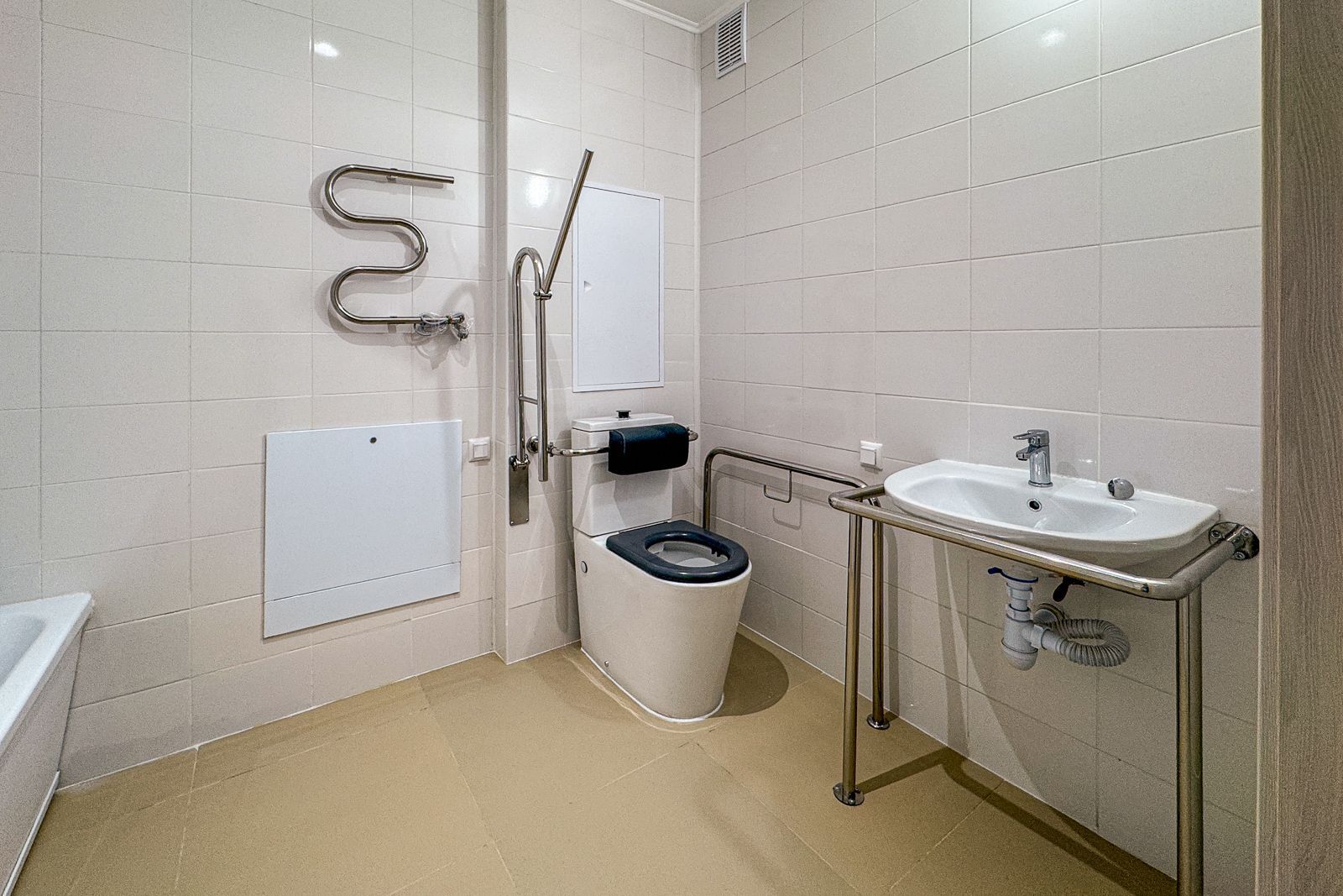 Для 13 квартир предусмотрена адаптация для лиц с ограниченной подвижностью: увеличены ширина коридоров и дверных проемов, оборудованы поручни в ванных комнатах и санузлах. В местах общественного пользования создана безбарьерная среда.