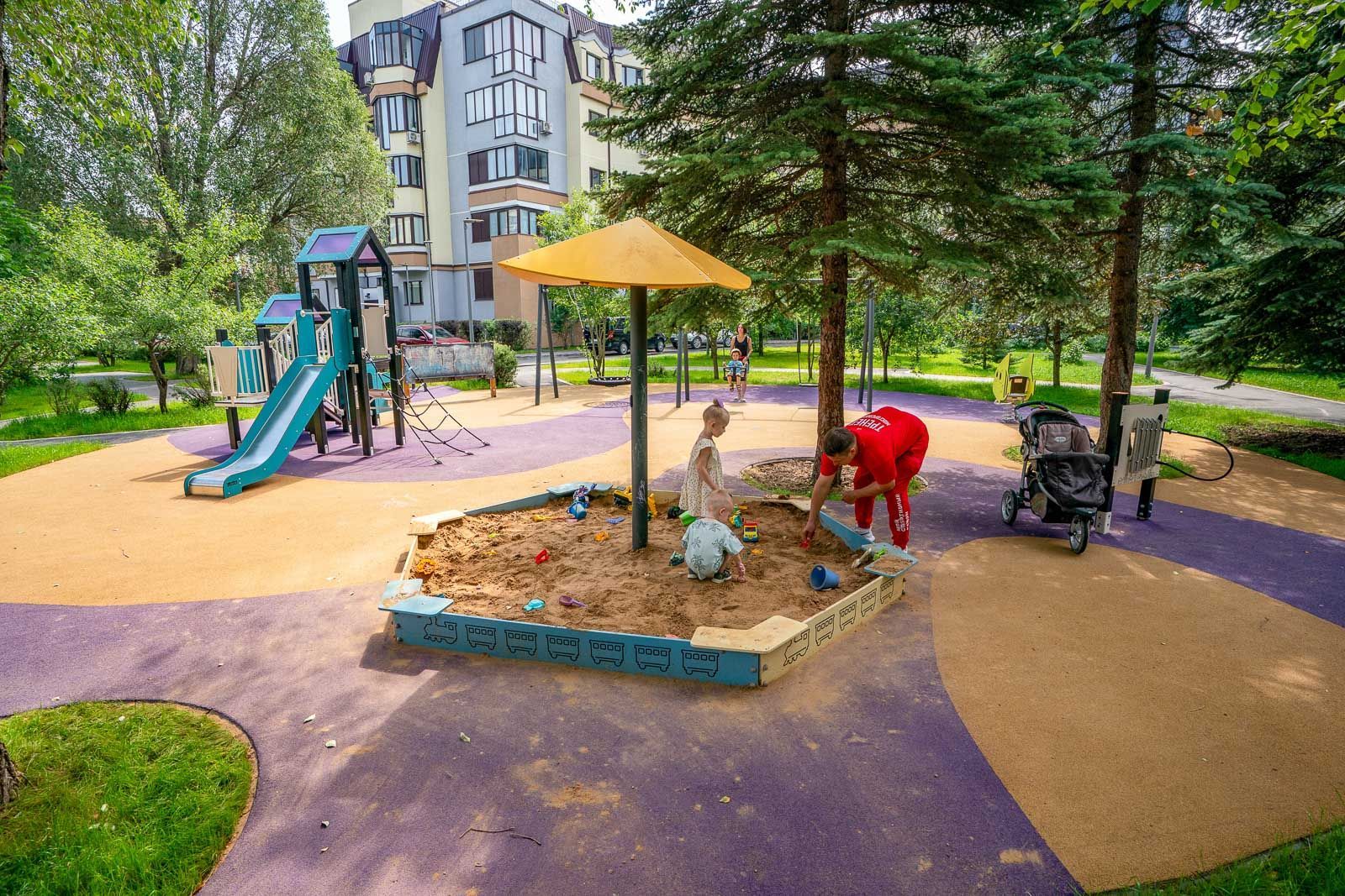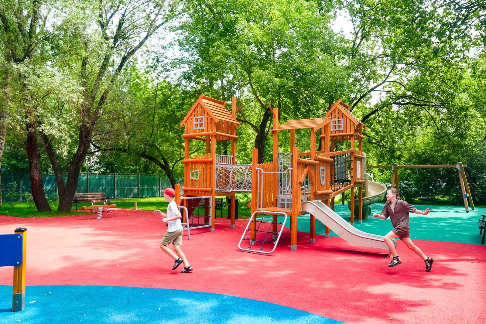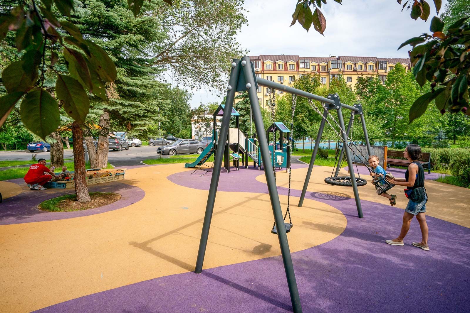 Для младших жителей созданы две игровые зоны. Одна из них оборудована канатными элементами, мини-скалодромом и интересной паутинкой. Также здесь установлены большие качели-балансиры, качели-гнезда и песочница. На другой площадке, расположенной на территории двора дома 18, корпуса 2, установлен просторный игровой комплекс с разнообразными горками, переходами и канатной системой для лазания.