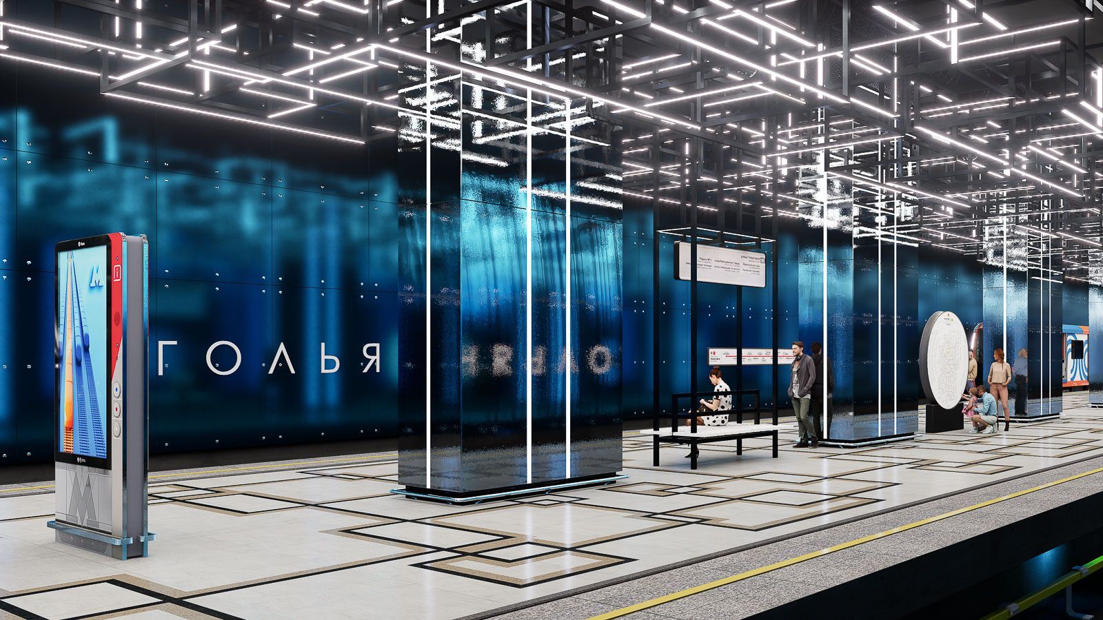 "Сергей Собянин утвердил архитектурно-художественный проект станции метро “Гольяново”. Тематика оформления будет связана с космосом, и облик станции будет включать образы, связанные с зондами и солнечными батареями. Для усиления эффекта на путевых стенах будет активно применяться российский металл, в частности, алюминиевые сотовые панели голубого цвета с градиентным переходом. Колонны платформы будут отделаны молотковой нержавеющей сталью и дополнены встроенными линейными светодиодными светильниками. Главным акцентом станет подвесной потолок в форме светящейся пространственной структуры. Пол станции украсят элементы из светлого и темного термообработанного гранита, уложенные в геометрическом узоре", — отметил Ефимов.