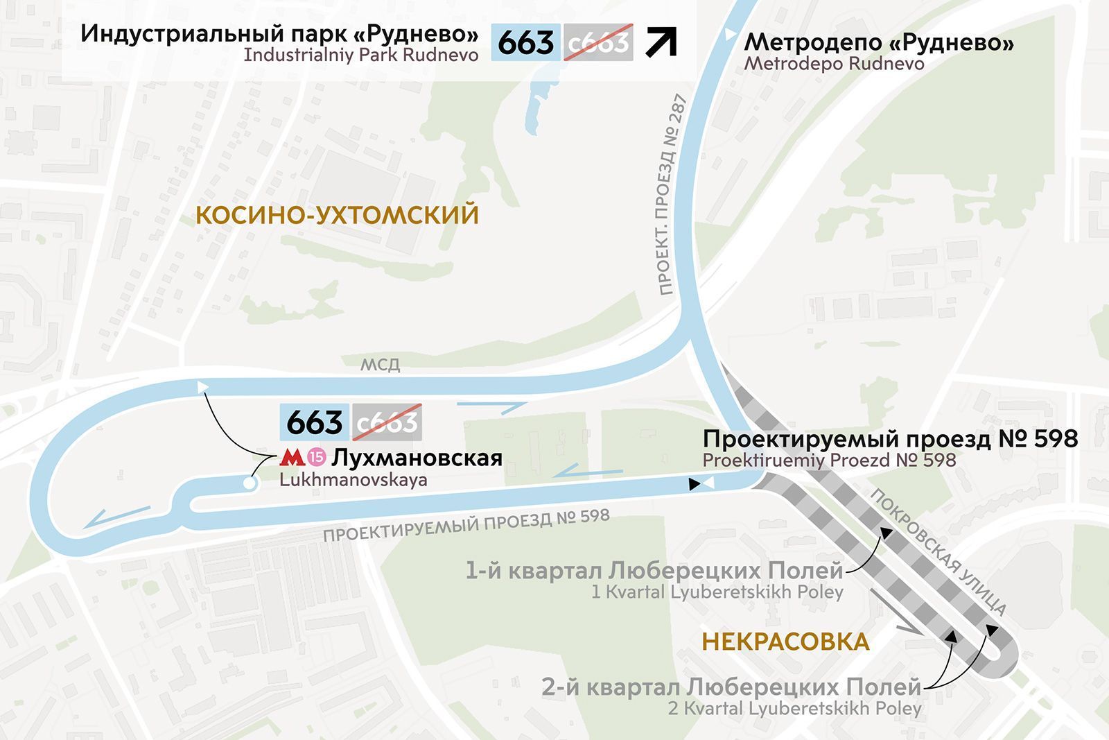 Социальный автобус С663 будет заменен на районный маршрут № 663. В направлении индустриального парка «Руднево» он пройдет по Московскому скоростному диаметру и обойдет Покровскую улицу. Интервалы движения станут более частыми.