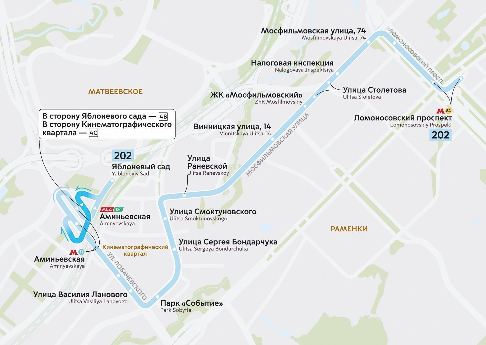 С 22 ноября в западной части Москвы, в районе Раменки, начнет функционировать новый маршрут наземного транспорта под номером 202.