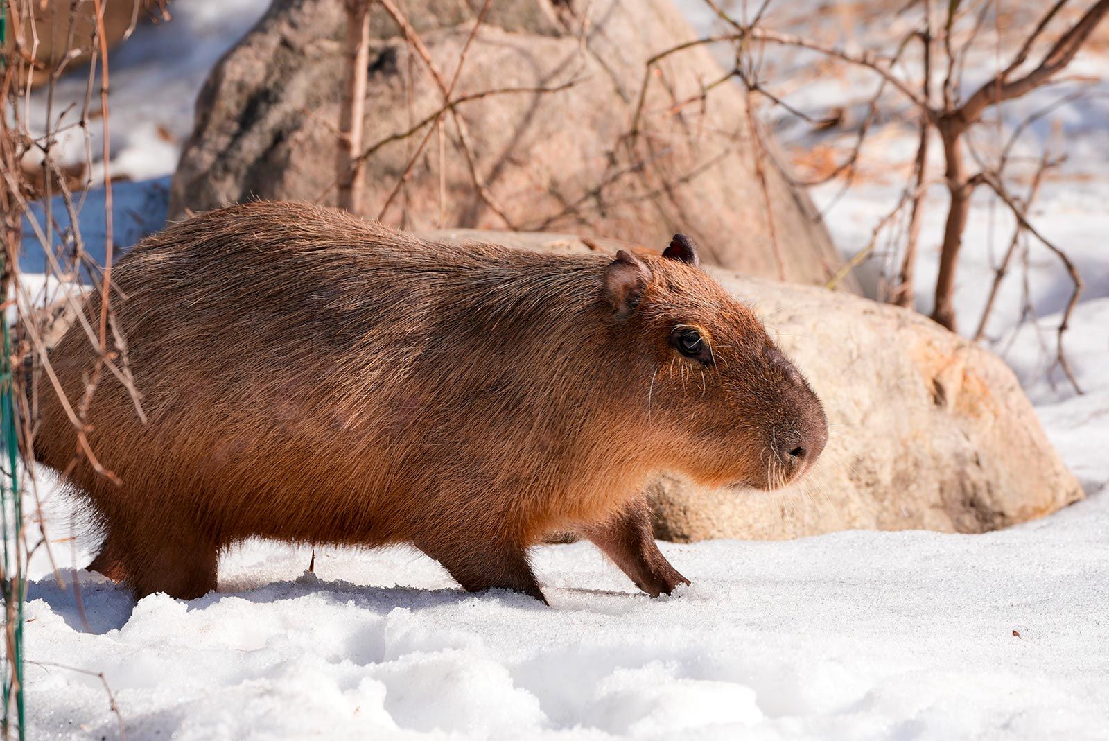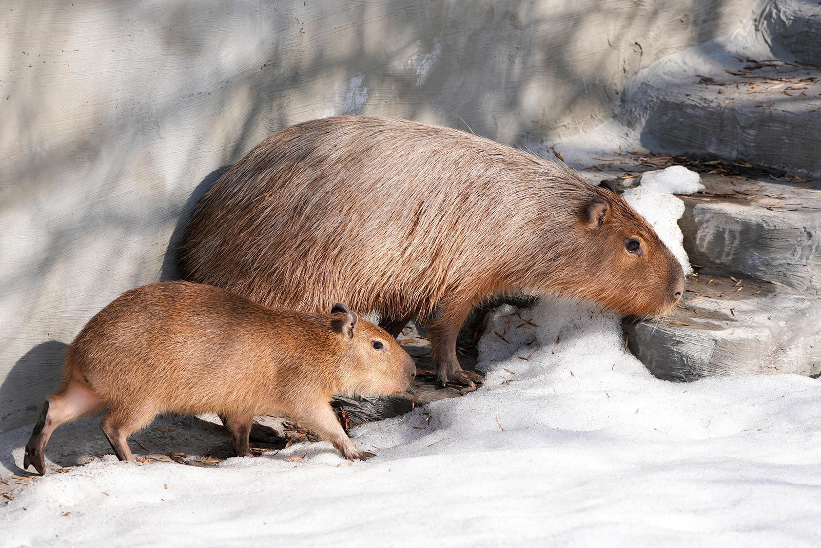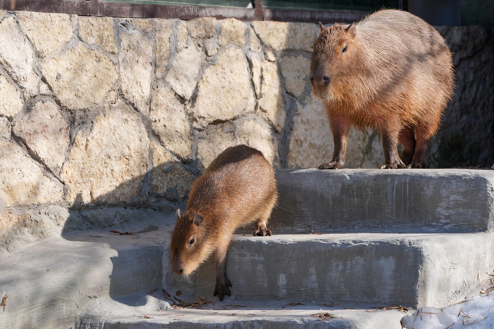 На прежних территориях зрители могут наблюдать за самыми крупными в мире грызунами, родом из Южной Америки, — это капибары. Эти водоплавающие животные ощущают себя комфортно около водоемов. В теплые месяцы они исследуют ров на улице. Первой на уличную территорию выходит Симка, родившаяся осенью прошлого года, за ней следует ее сестра Верта.