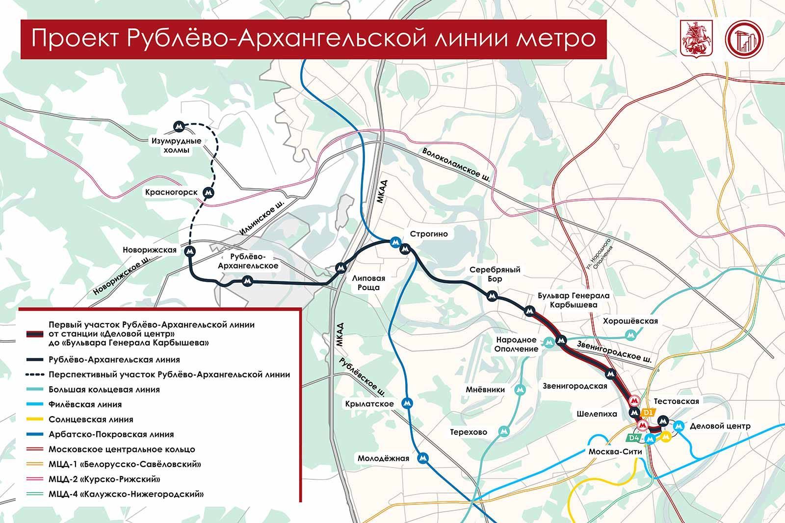 Строительство Рублево‑Архангельской линии метро в самом разгаре. В этом году планируется открытие первых пяти станций – от «Делового центра» до «Бульвара Генерала Карбышева».
