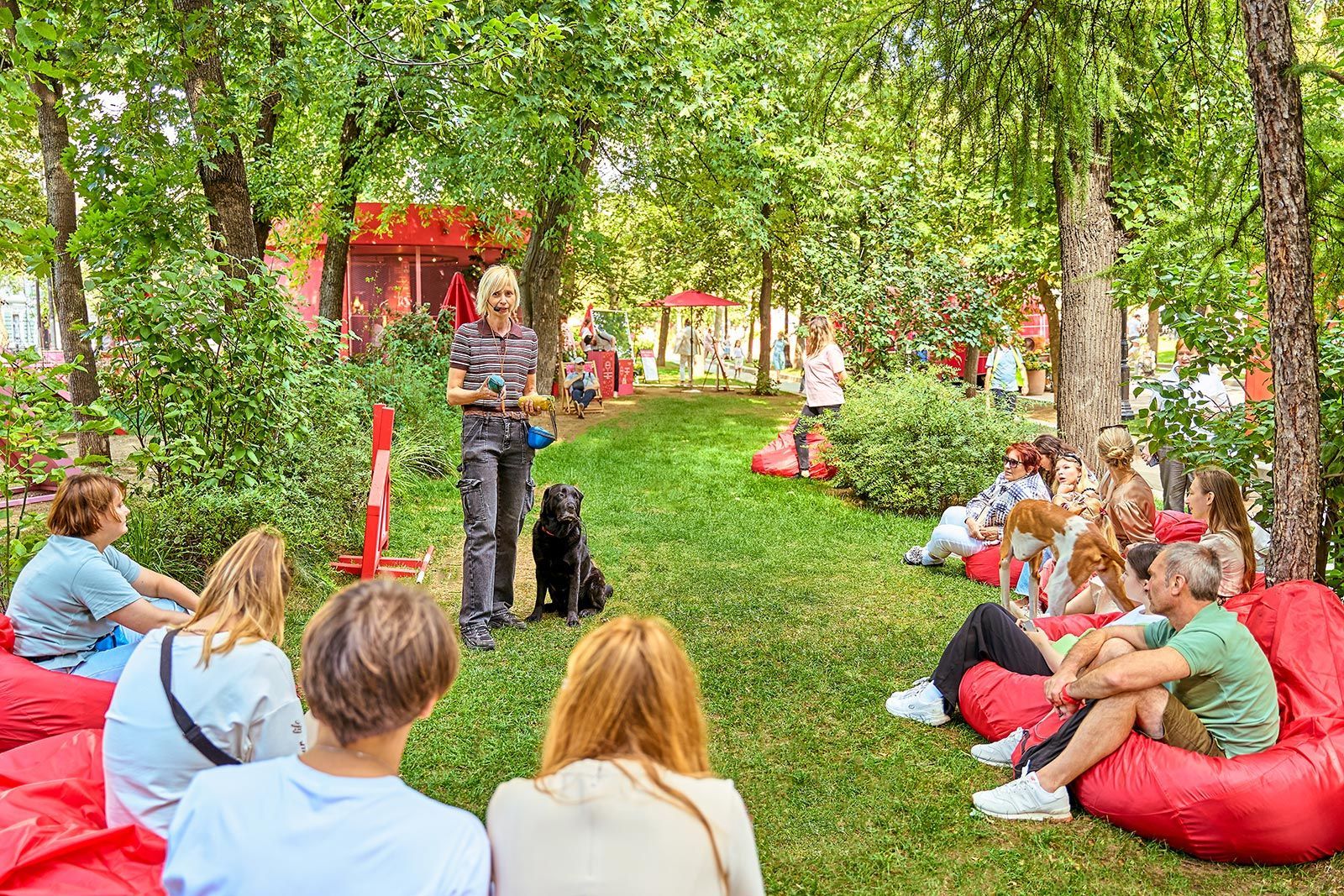 Профессиональные кинологи и спасатели МЧС продемонстрируют гостям основные команды на специализированной площадке. В «Домиках добра» волонтеры принимают корм и подарки для обитателей приютов.