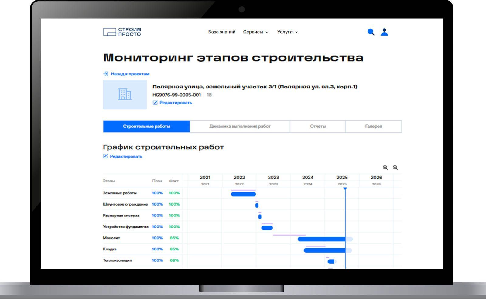 * Сервис "Мониторинг этапов строительства" для анализа процентной готовности объектов на различных этапах.