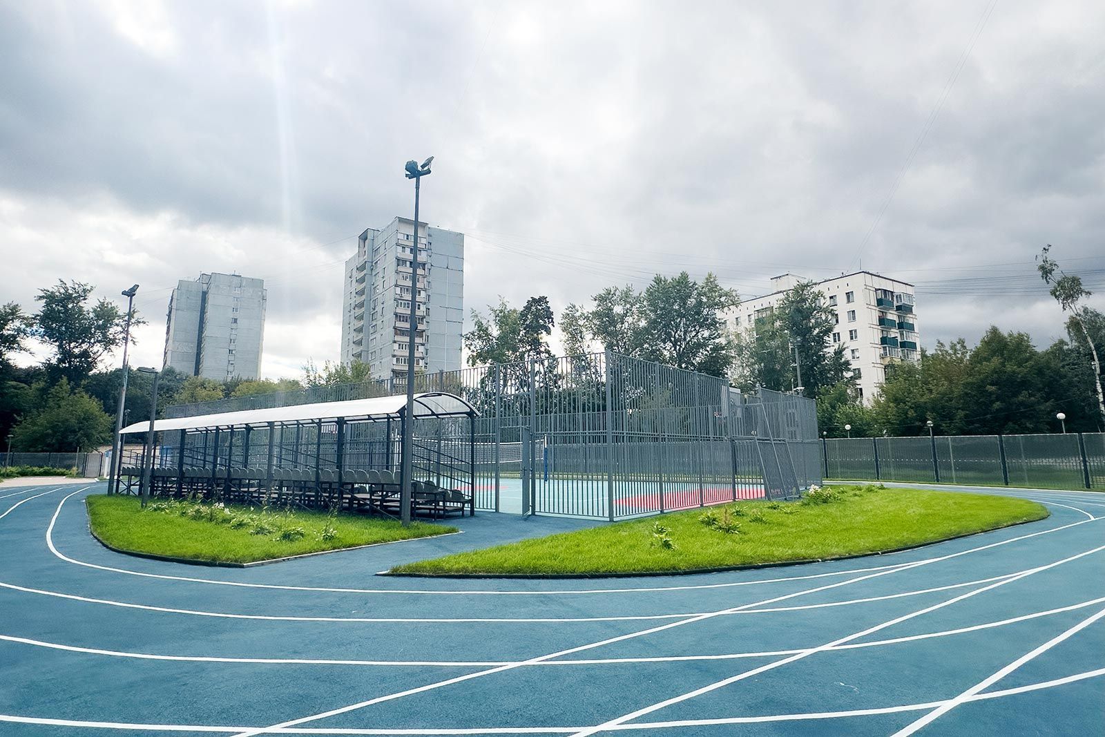 На территории школы создана спортивная зона, оснащенная беговой дорожкой, ямой для прыжков в длину, универсальными игровыми площадками, а также местами для сдачи норм ГТО, игры в настольный теннис и занятий воркаутом. Кроме того, для учеников предусмотрено место для отдыха.