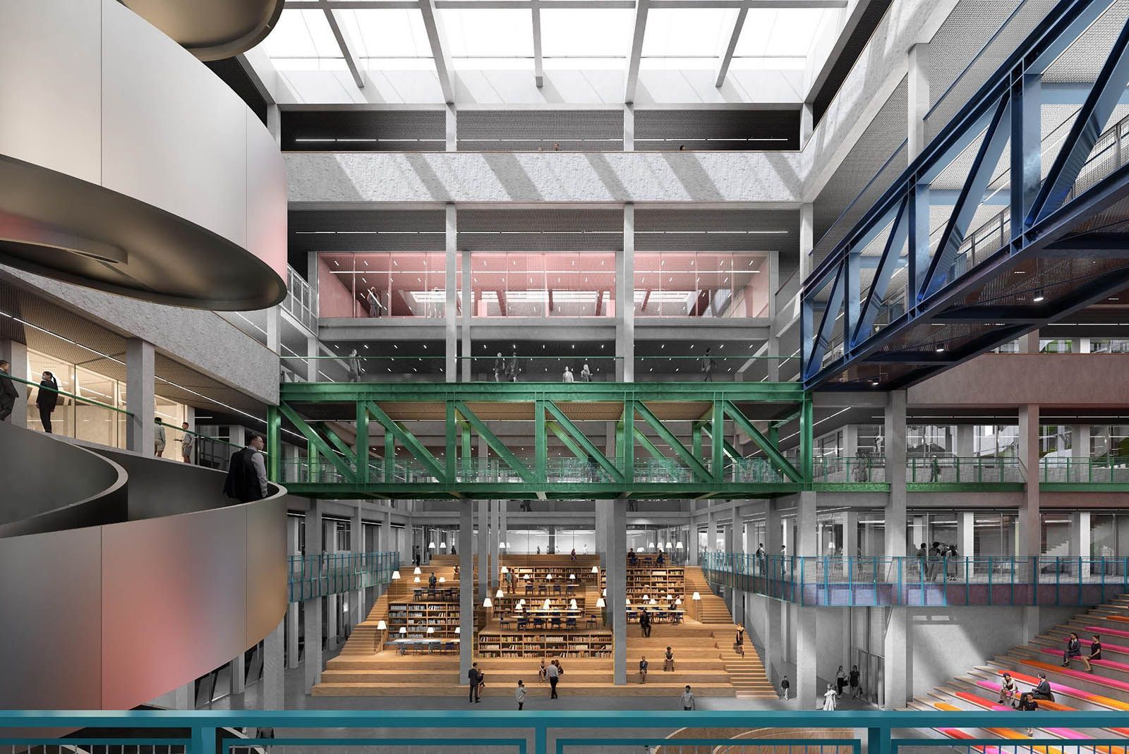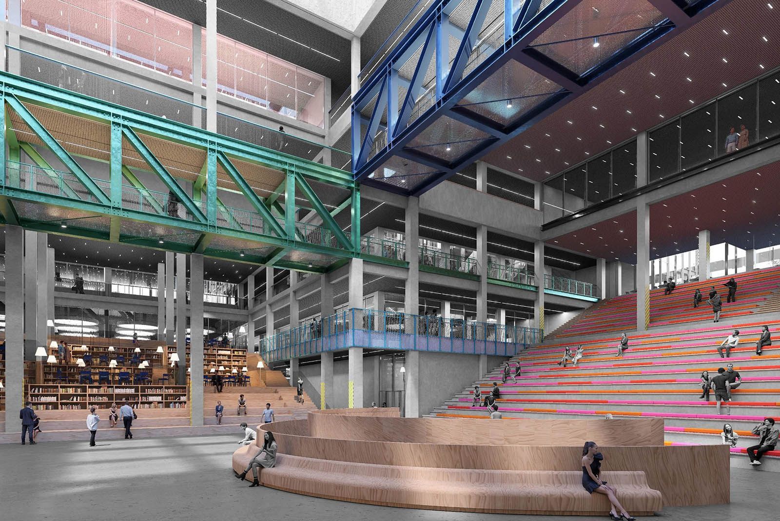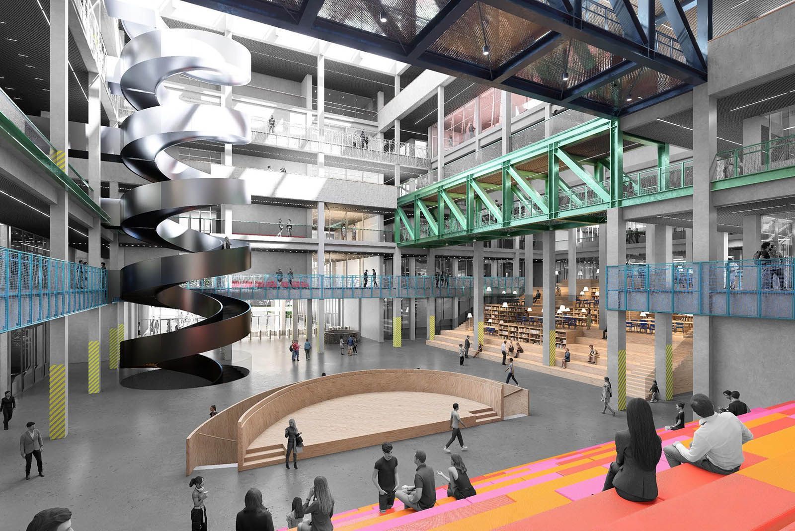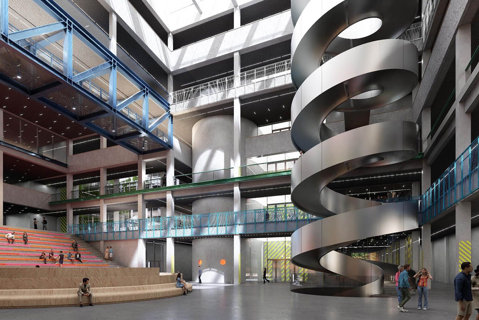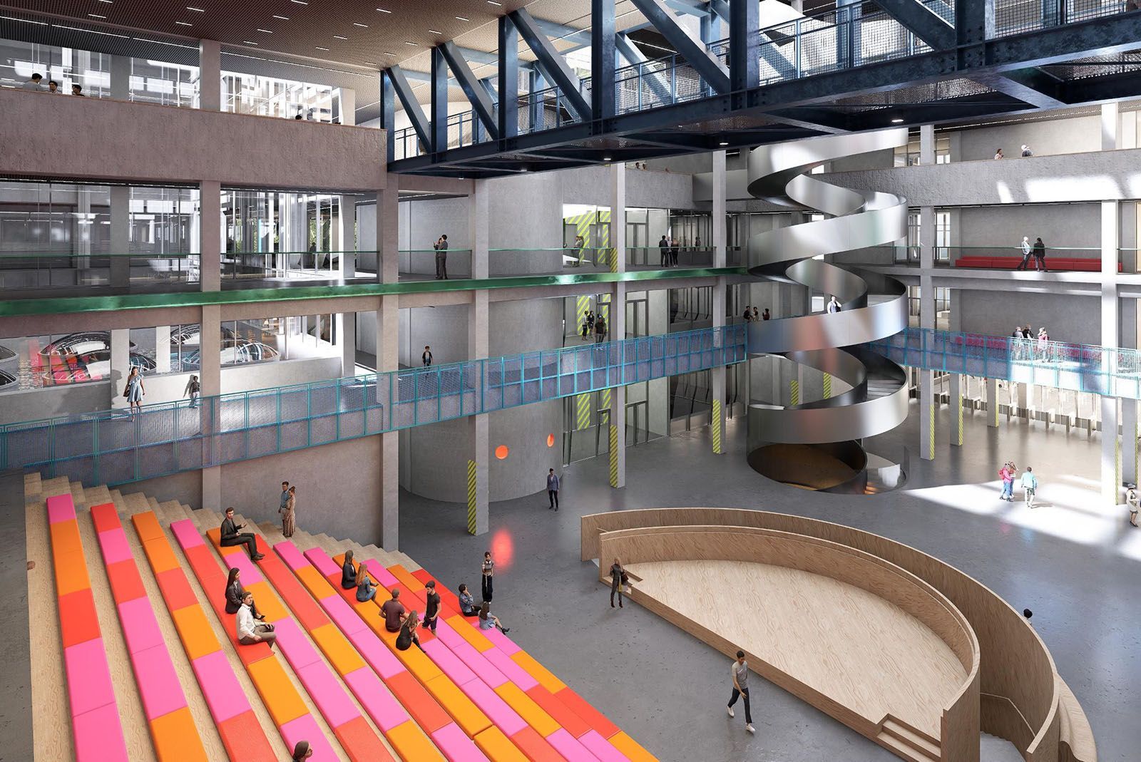 В новом колледже планируется создать два спортивных зала. В центре здания построят два амфитеатра: один станет медиатекой, а другой — пространством для проведения мероприятий и отдыха.