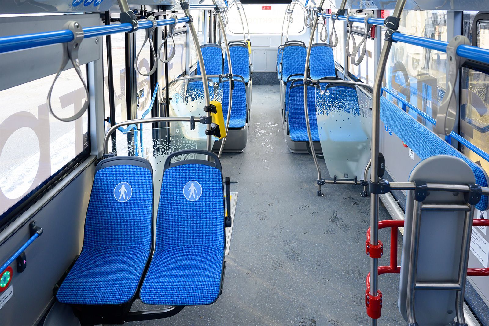 Во всех электробусах установлены USB-слоты для зарядки телефонов, медиаэкраны с информацией о ближайших остановках, система климат-контроля и адресные кнопки для открытия дверей, помогающие поддерживать комфортную температуру. Низкопольный транспорт оборудован откидной аппарелью, кнопками вызова водителя, специализированными местами для маломобильных пассажиров и цифровыми валидаторами у дверей для удобной оплаты проезда. Для размещения велосипедов, колясок или крупного багажа предусмотрена накопительная площадка. При открытии дверей создается воздушная завеса, поддерживающая комфортную температуру в салоне. Для безопасности пассажиров транспорт оснащен видеокамерами внутри и снаружи. Все электробусы отвечают строгим стандартам безопасности и сервиса.