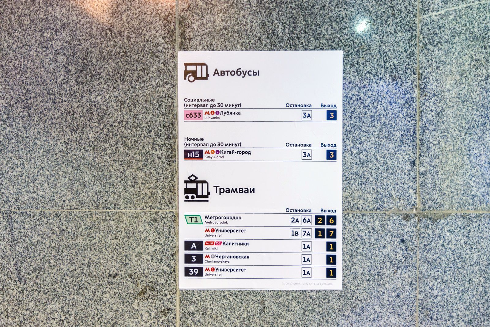 В московском метрополитене начали устанавливать обновлённые схемы трамвайной сети города. Современные навигационные материалы будут размещены в вестибюлях 35 станций, расположенных рядом с трамвайными остановками. Впервые подобные схемы появятся на таких станциях метро, как «Рижская», «Тургеневская», «Сходненская», «Площадь Ильича», «Чкаловская» и ещё на трёх станциях.
