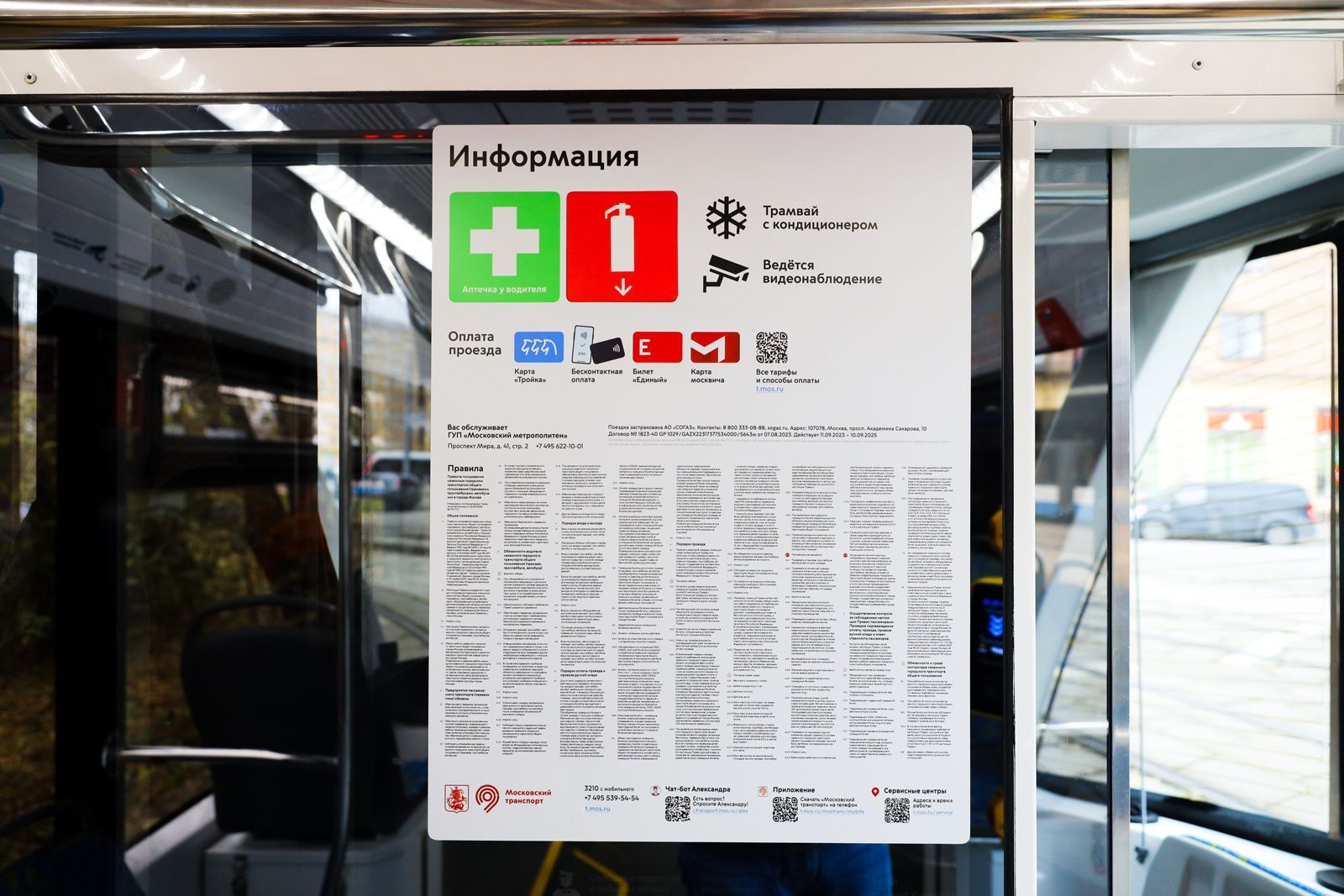 Внутри вагонов размещены материалы с правилами пользования транспортом, рекомендациями по вежливому поведению и способам оплаты проезда. Дополняют текстовые уведомления иллюстрации, выполненные в узнаваемом московском транспортном стиле. На боковых стеклах трамваев появились указатели маршрута, помогающие определить ключевые точки его прохождения, включая пересадки на станции метро, МЦД и железнодорожные вокзалы.