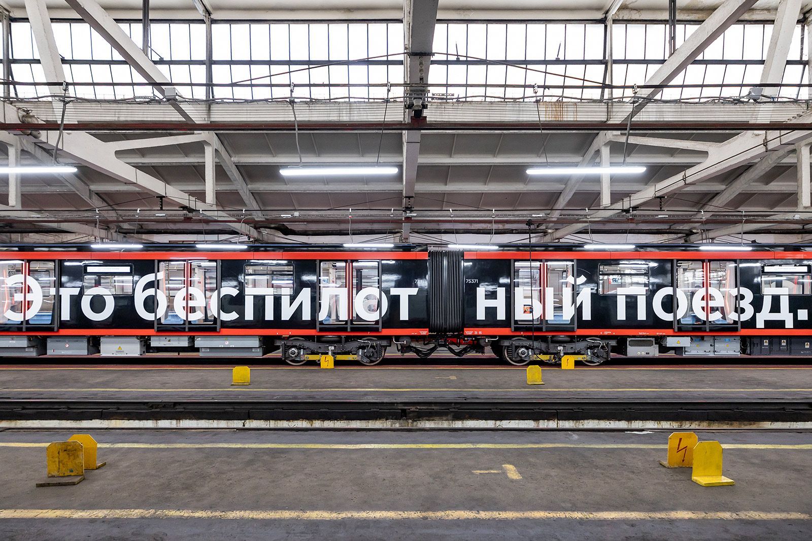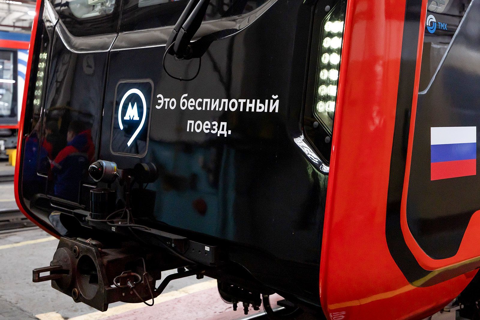 Поезд «Москва-2024», отличающийся черной маской и красной окантовкой, вскоре выйдет из депо «Замоскворецкое». Этот состав выделяется среди других благодаря цвету и надписи «Это беспилотный поезд» на борту. Перед выходом на линию машинист и специалисты Центра исследования и разработки беспилотного транспорта Московского метрополитена проводят контрольный осмотр всех систем. После разрешения поезд отправляется по своему маршруту.