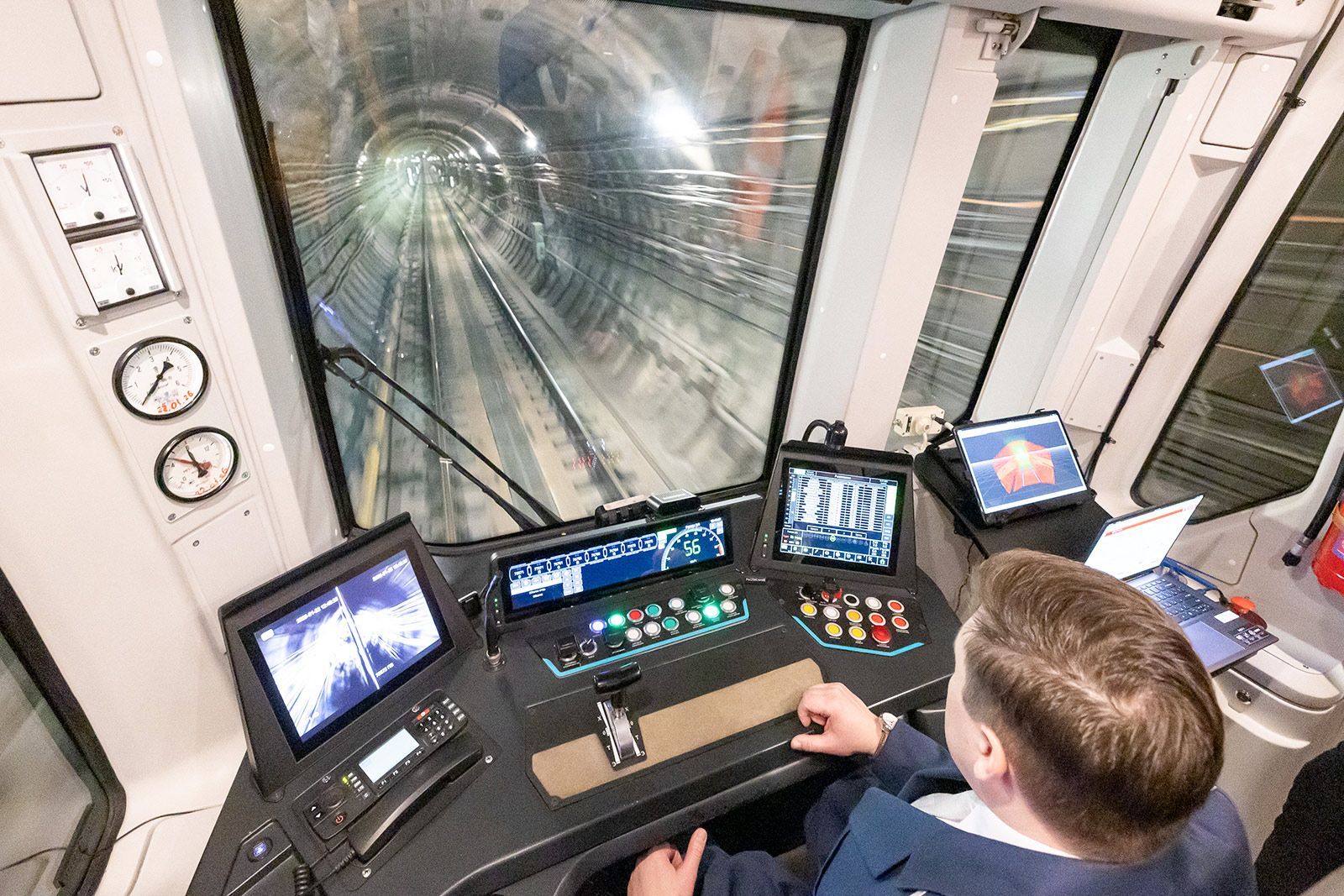 Обкатка состава, работающего без машиниста, стартовала на Большой кольцевой линии метро. Поезд начинает движение плавно и аналогично останавливается на станциях, придерживаясь установленных интервалов. Для обеспечения безопасности на тестовом этапе в кабине присутствует машинист, который следит за процессом движения.