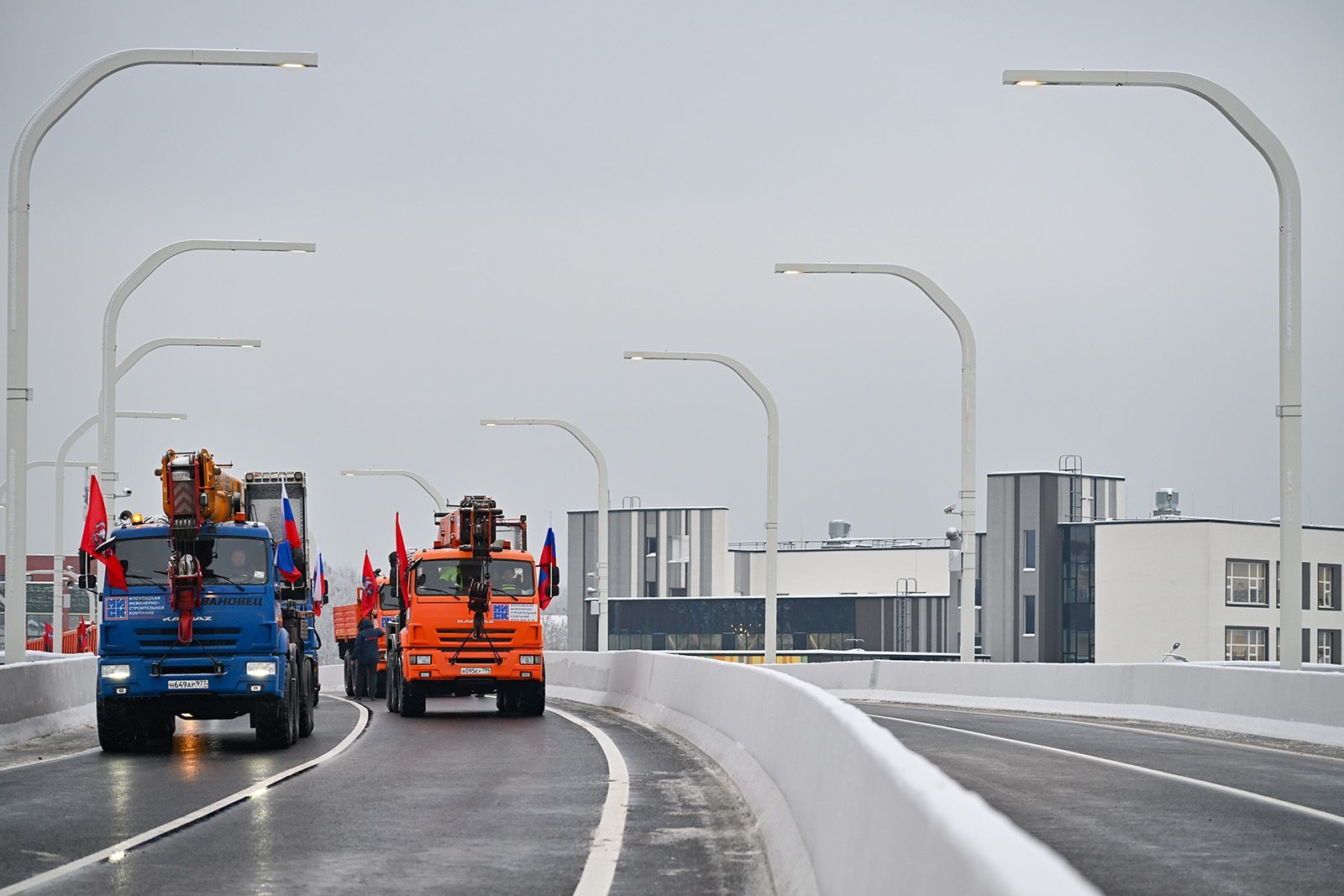 Сергей Собянин представил общественности новый участок Коммунарского шоссе, который отныне открыт для движения. Этот участок включает современный путепровод, пересекающий улицу Александры Монаховой.