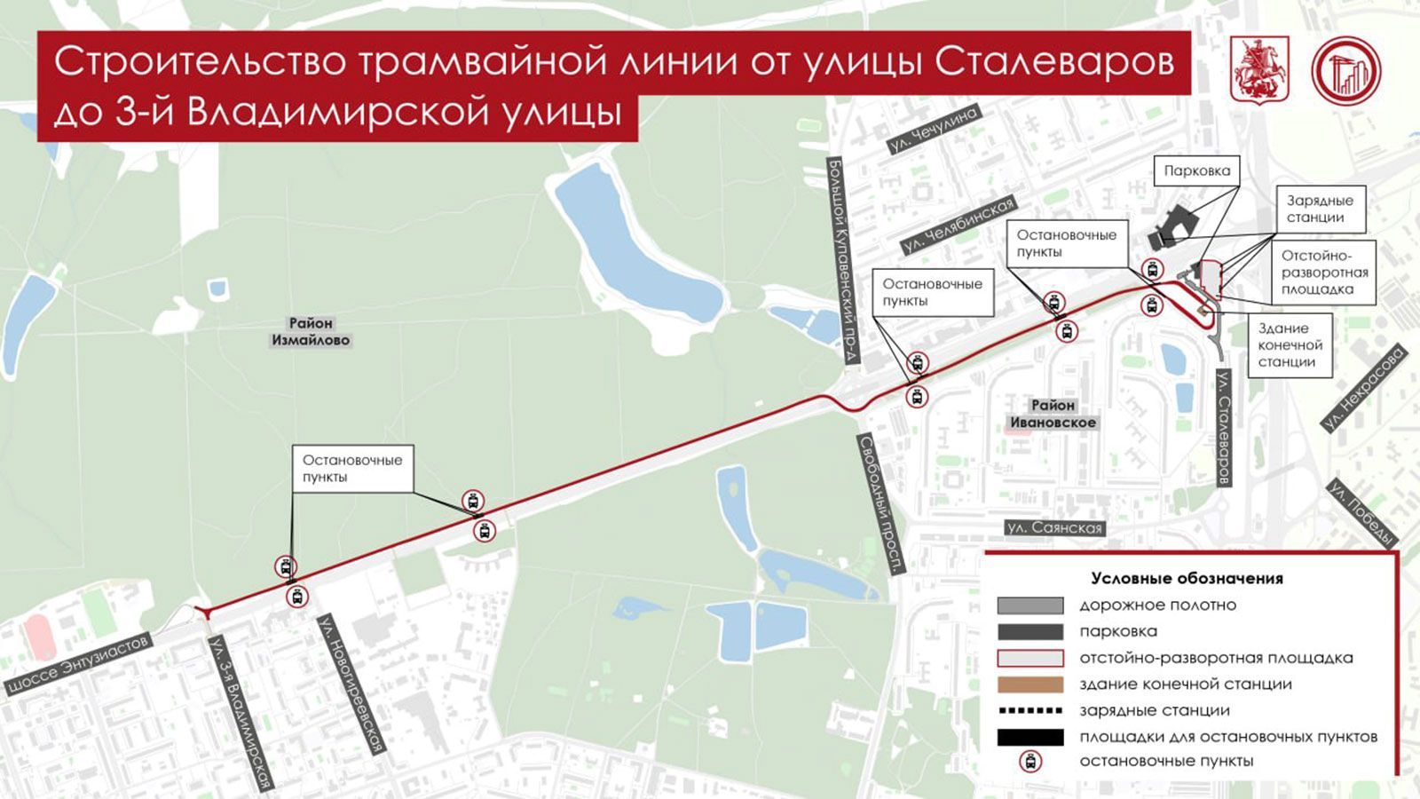 «Строительство нового участка ведём с применением современных, максимально безопасных технологий: использование бесстыковых рельсов и виброгасящих матов позволит минимизировать шум в жилых зонах, а также на территории Терлецкого и Измайловского парков», — добавил Сергей Собянин.