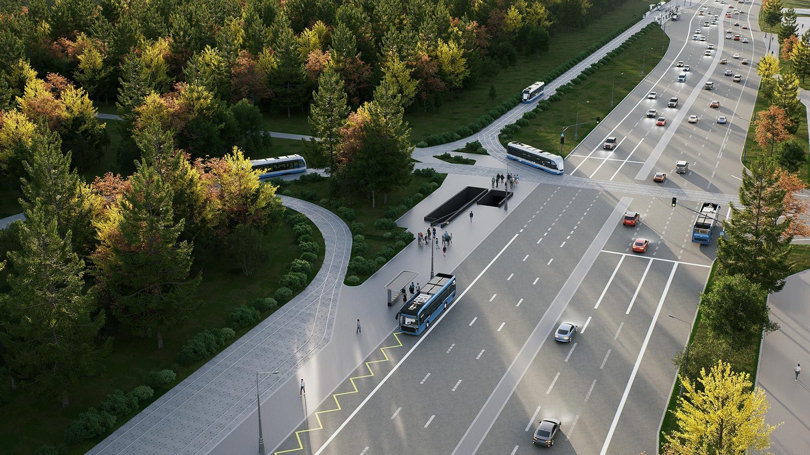 В рамках проекта предусмотрено создание двух перехватывающих парковок, специализированной площадки для электробусов с зарядными станциями, а также приподнятых платформ, делающих посадку и высадку комфортной для маломобильных граждан и родителей с колясками. Появятся современные павильоны с зарядками для устройств и информационными табло.