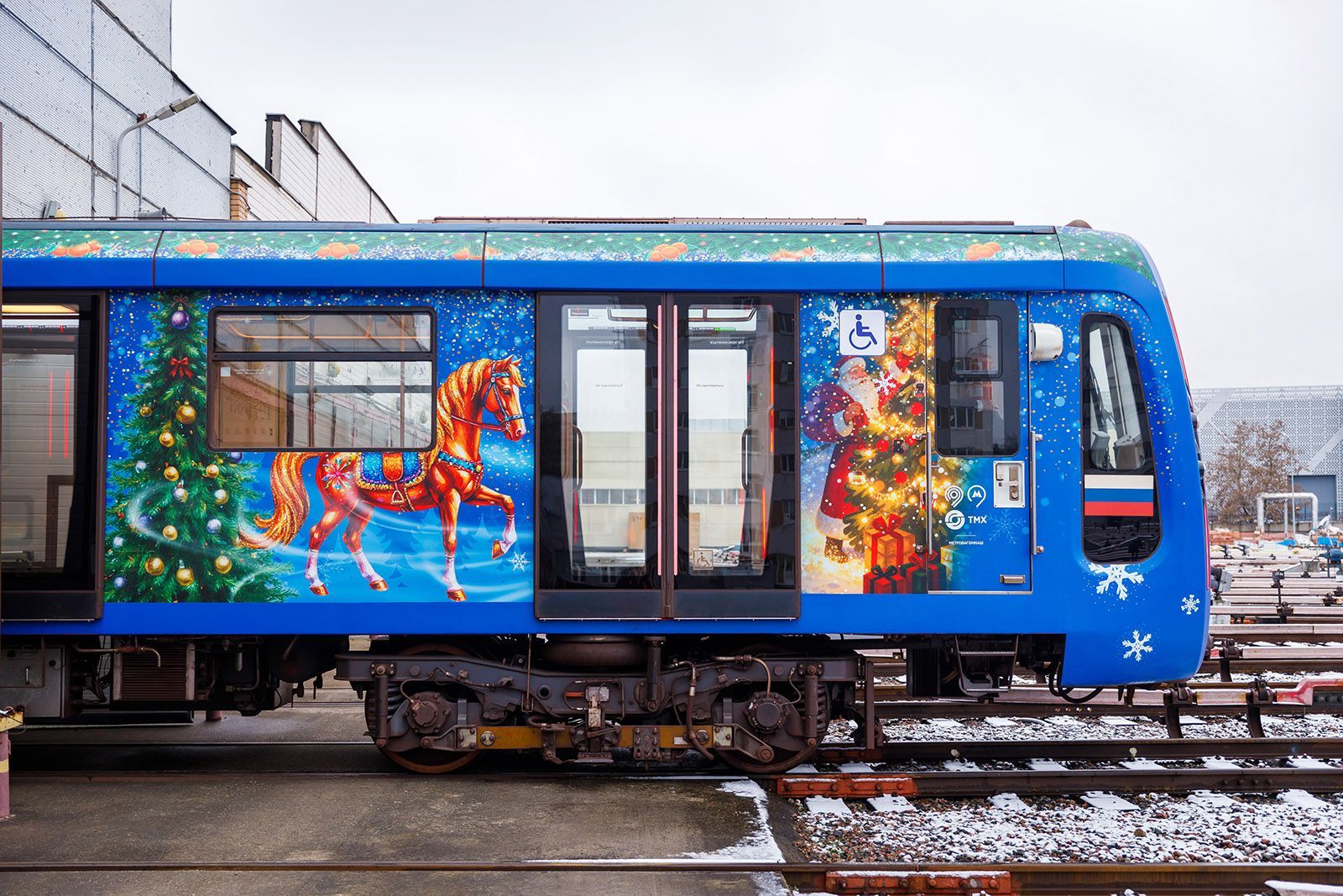 К новогодним праздником в столице появилось 24 украшенных поезда. Они оформлены в зимнем стиле и представлены моделями «Русич», «Ока», «Москва-2019» и «Москва-2020». Такие брендированные составы можно встретить на разных линиях: Замоскворецкой, Сокольнической, Арбатско-Покровской, Бутовской, Калужско-Рижской, Калининской, Солнцевской, Серпуховско-Тимирязевской, Филевской, Таганско-Краснопресненской, Кольцевой и Большой кольцевой.