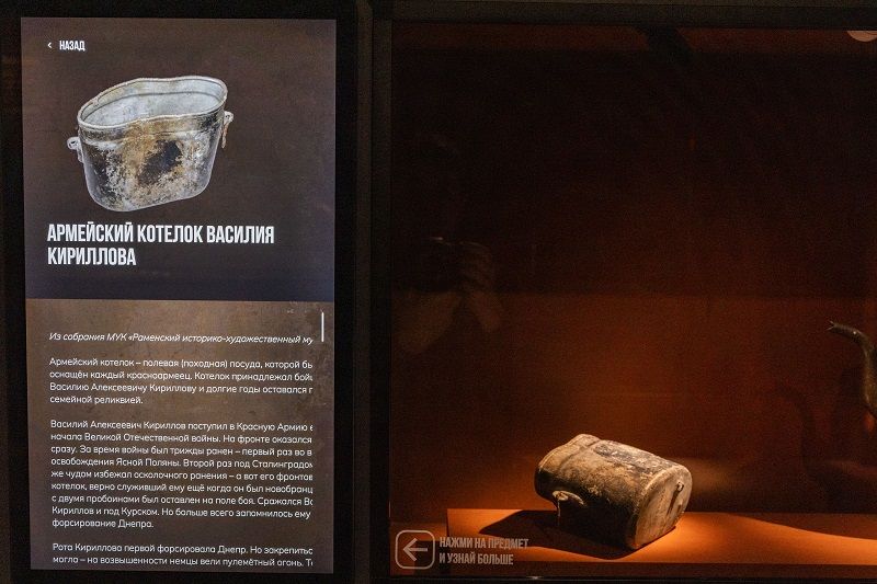 На Поклонной горе гости музея могут увидеть армейский котелок с необычной историей. Этот экспонат принадлежал Василию Алексеевичу Кириллову, солдату, принявшему участие в Великой Отечественной войне с первых дней. Кириллов пережил три ранения, одно из которых под Сталинградом, где он чудом избежал тяжелой травмы от осколков. Тем не менее его котелок, верно служивший ему еще с довоенного времени, с двумя пробоинами остался на поле боя. После войны Василий, оказавшись под Волгоградом, посетил места сражений, где нашел свой старый армейский котелок, узнав его по инициалам, выцарапанным ножом, и двум повреждениям. Долгие годы этот предмет являлся семейной реликвией Василия Кириллова.