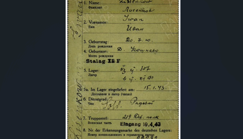 Специалисты Центра сохранения памяти о советских военнопленных выявили, что рядовой Иван Михеевич Лисенков попал в плен возле Нарвы 20 августа 1941 года. Его удерживали в лагерях шталаг 307 и шталаг XII F.