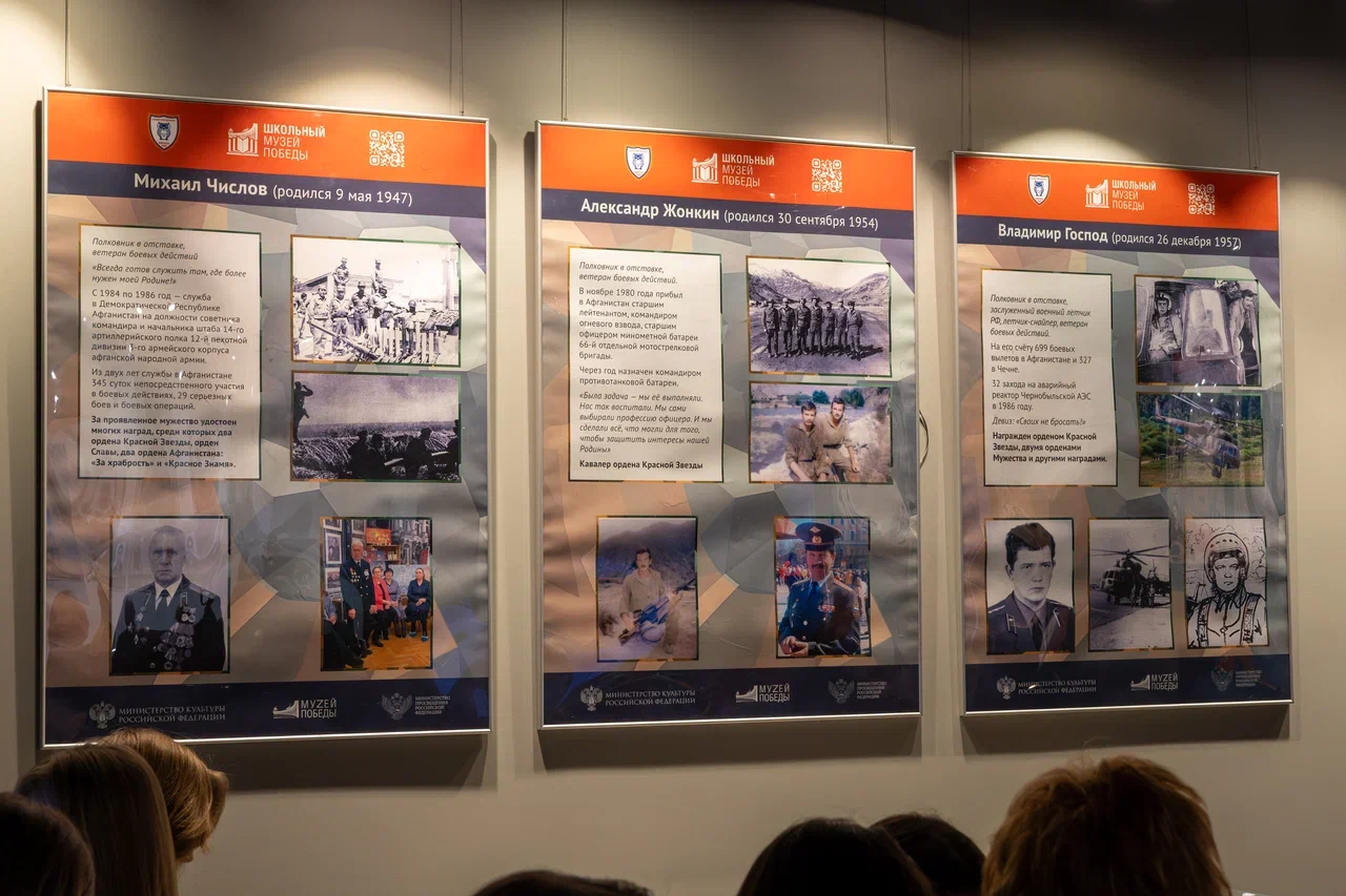 Например, на выставке можно увидеть истории пилотов Александра Жонкина и Владимира Господа, артиллериста Михаила Числова. Среди экспонатов представлены личный фотоальбом Жонкина и модель вертолета Ка-50 («Черная акула»), использованного во времена войны в Афганистане и на котором летал Владимир Господ.