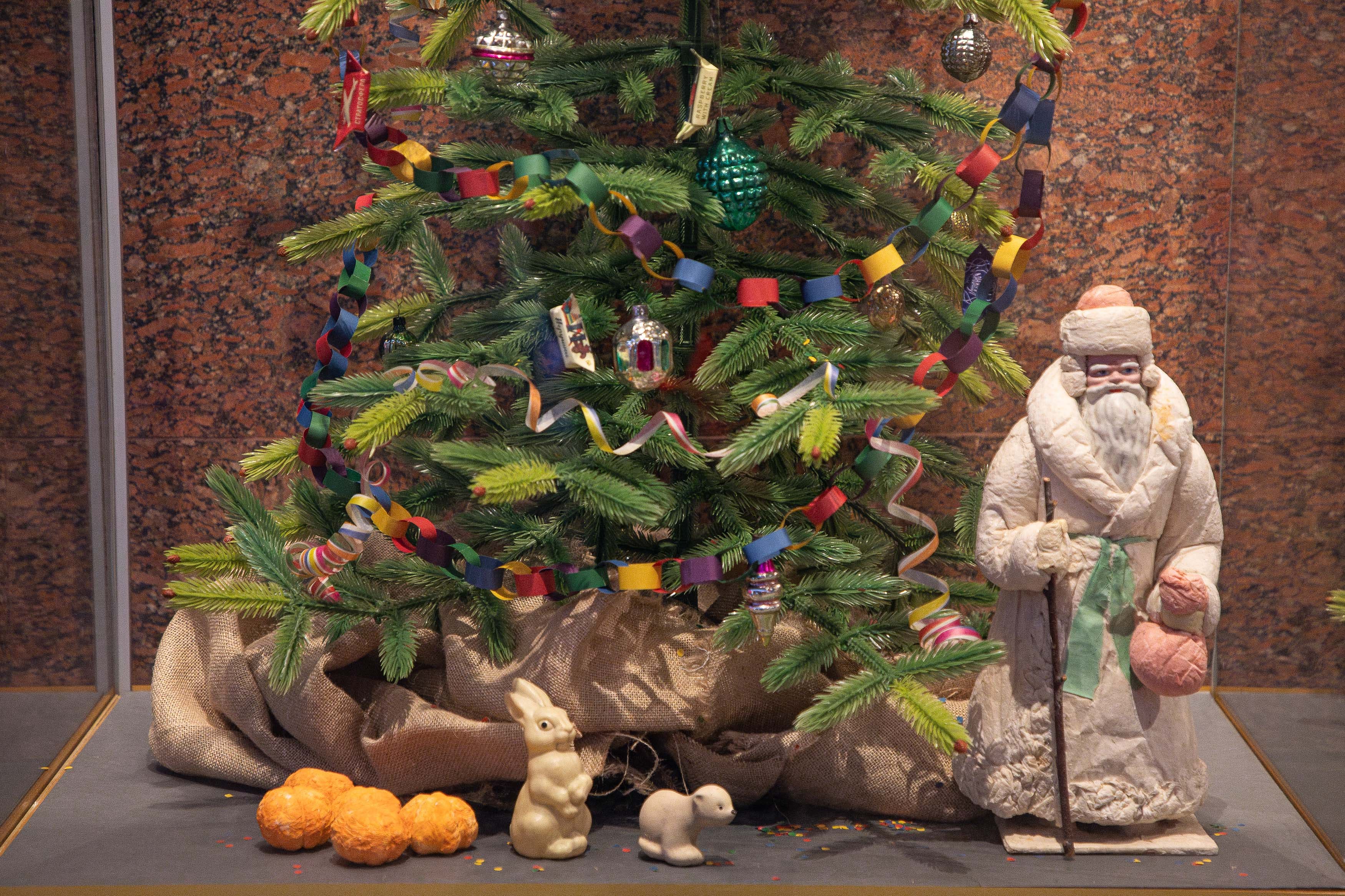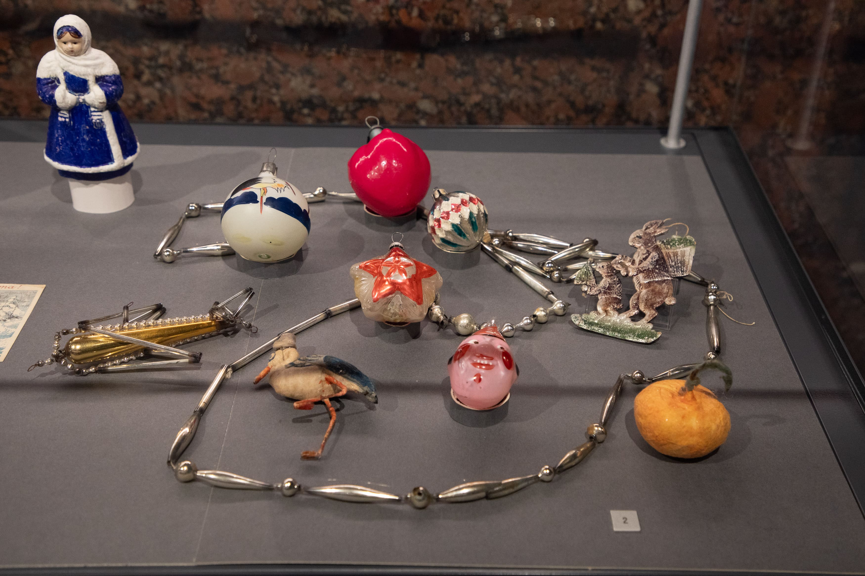 В выставке будет представлено более 70 экспонатов из коллекции Музея Победы и Российской государственной детской библиотеки. Посетители увидят ёлочные игрушки в виде героев детских книг, созданные в 1930-1950-е годы. В экспозиции покажут не только традиционные стеклянные украшения, но и ватные игрушки, изготавливаемые в 1930-е годы чаще всего вручную, картонные игрушки, появившиеся из-за нехватки материалов, а также изделия ручной работы из мишуры, проволоки, стекляруса и синельки, включая необычное украшение «Букет цветов». В витринах появятся игрушки по эскизам художницы-кукольницы Маргариты Димзе. Эти игрушки украшали практически каждую советскую ёлку и остаются знакомыми многим. Стоит отметить, что большинство украшений представляют добрых и мирных персонажей. Посетители Музея Победы увидят животных из народных сказок, сказочную Алёнушку, мужичка с ноготок и других персонажей, а также ватного Деда Мороза. Некоторые украшения демонстрируют этапы развития и достижения СССР.