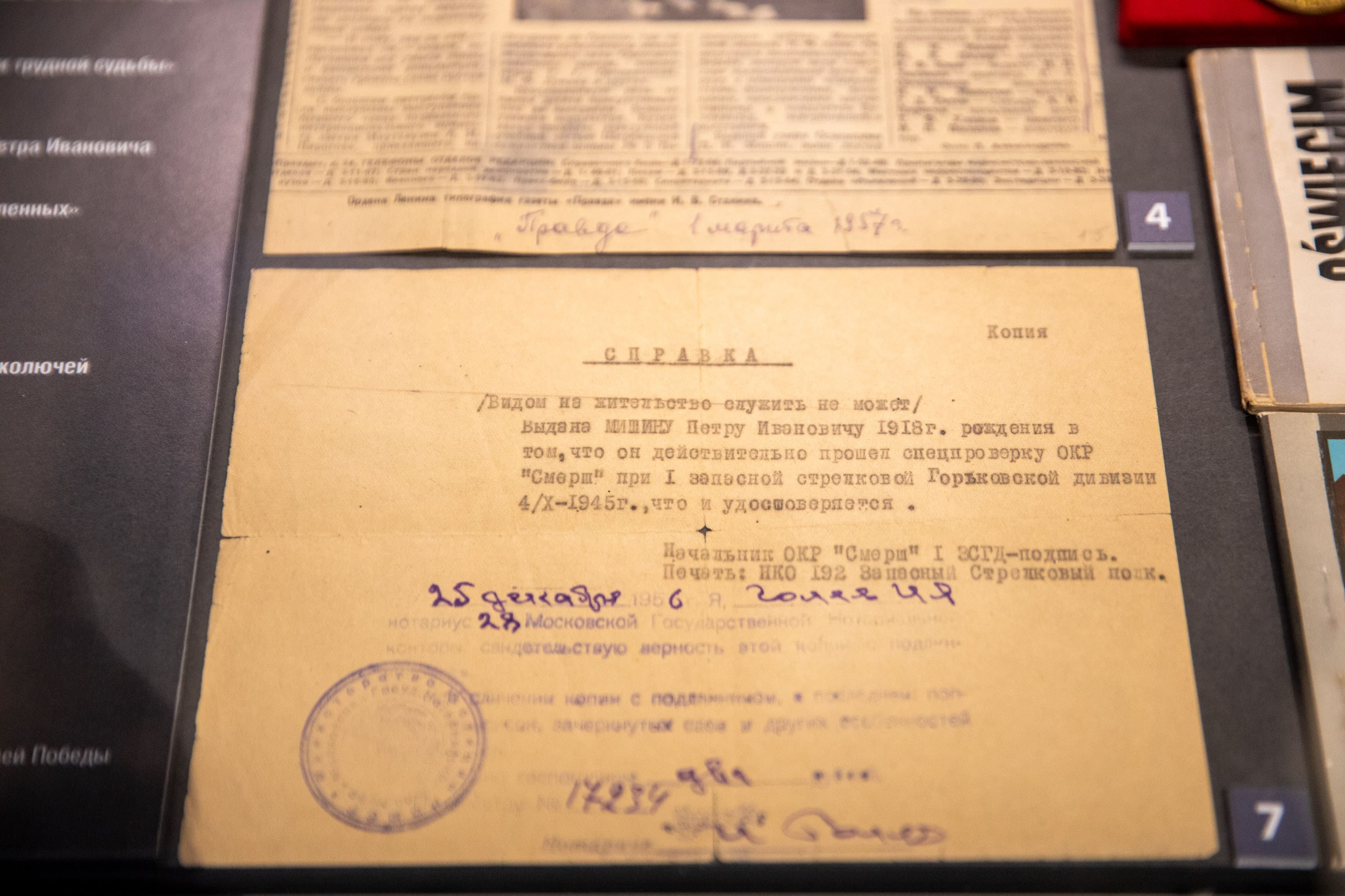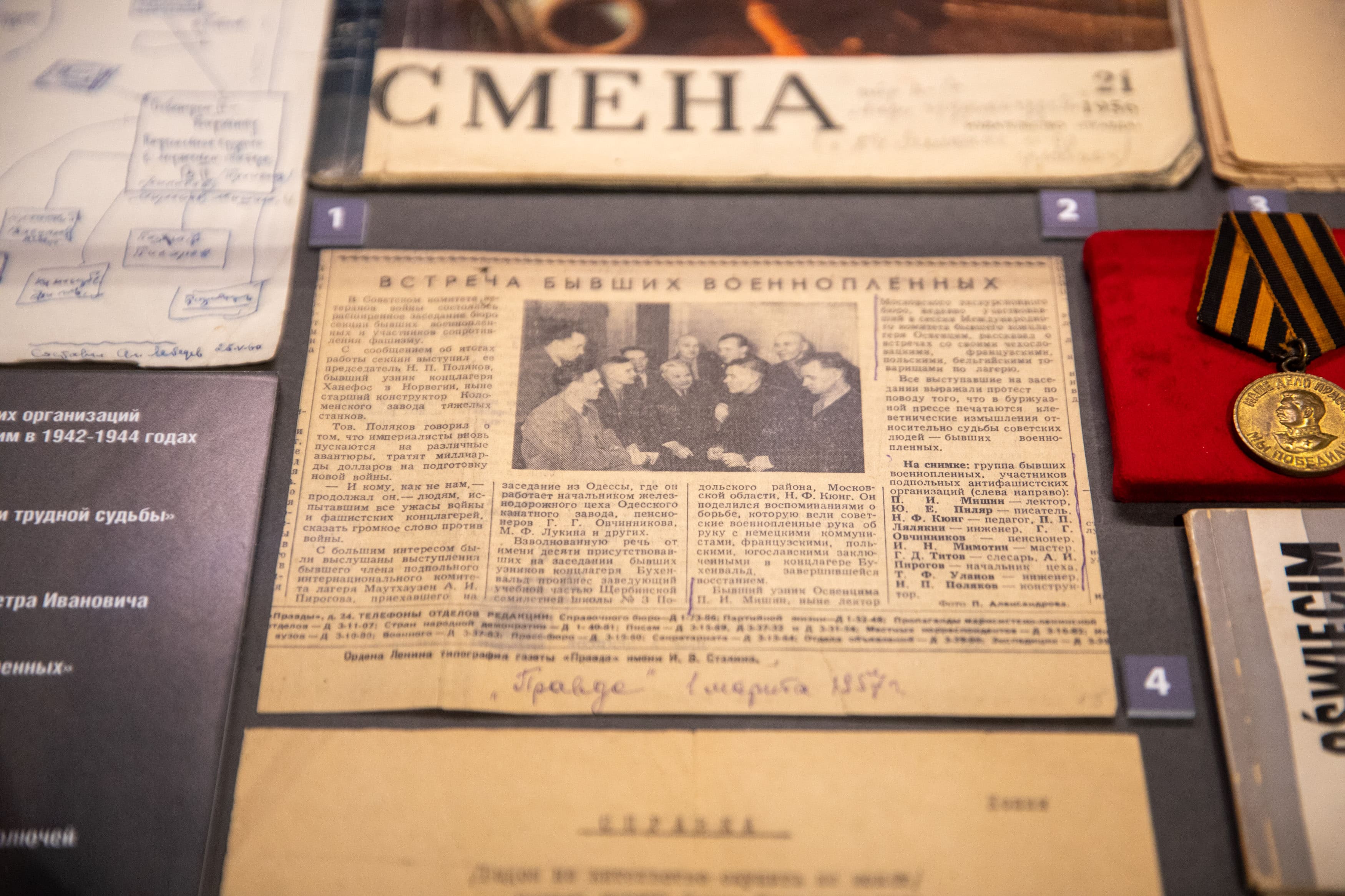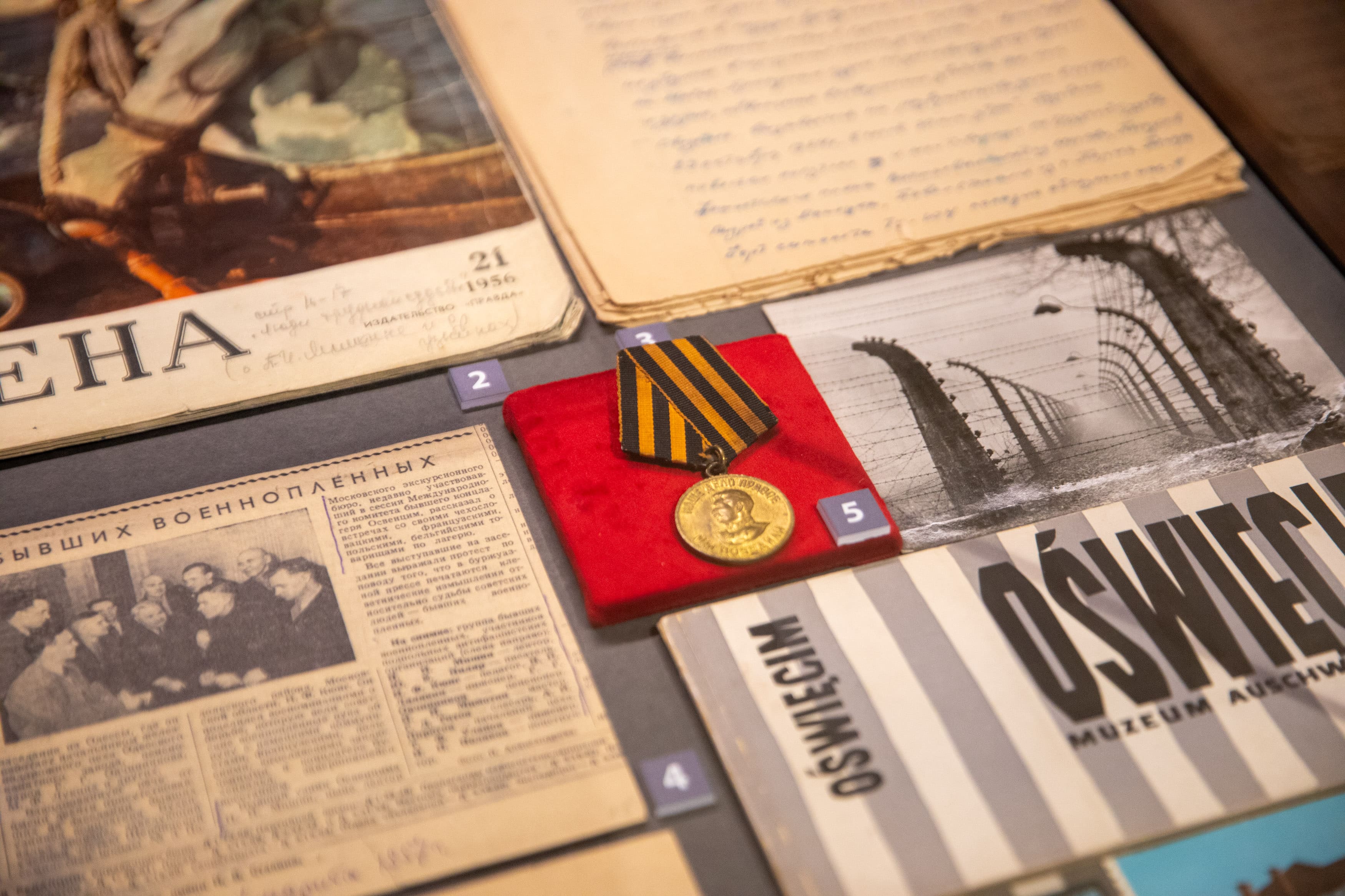 В преддверии Международного дня освобождения узников фашистских концлагерей в Музее Победы была представлена обновленная экспозиция «Семейные реликвии». Данная выставка посвящена фронтовику Петру Мишину, человеку, прошедшему Освенцим и Бухенвальд.