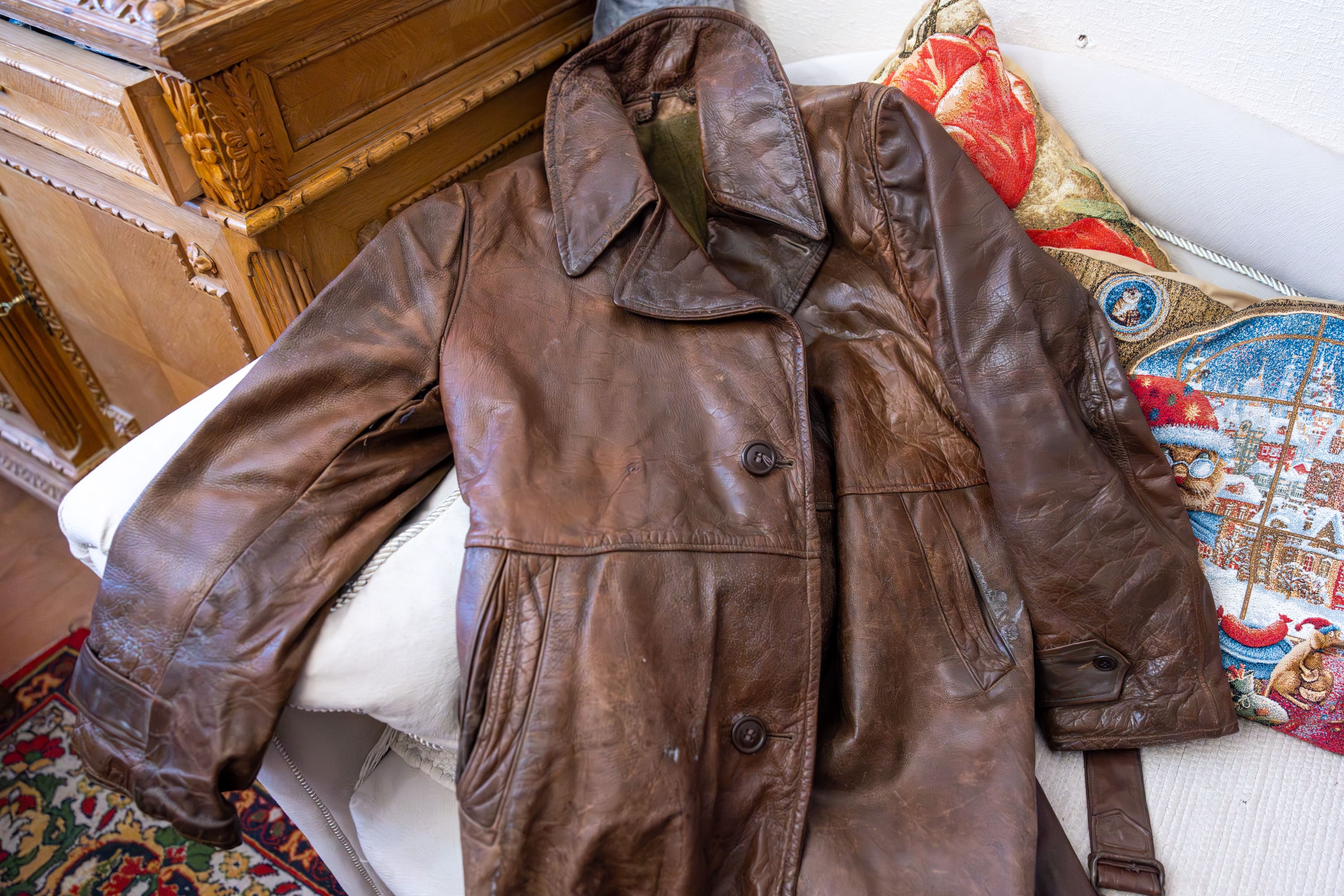 Среди семейных реликвий особое место занимает кожаный плащ, который отец Ольги Константиновны получил по ленд-лизу в конце войны и носил только в особых случаях. Ольга Самсонова рассказала, что, несмотря на трудные военные годы, родители старались сделать ее детство счастливым.