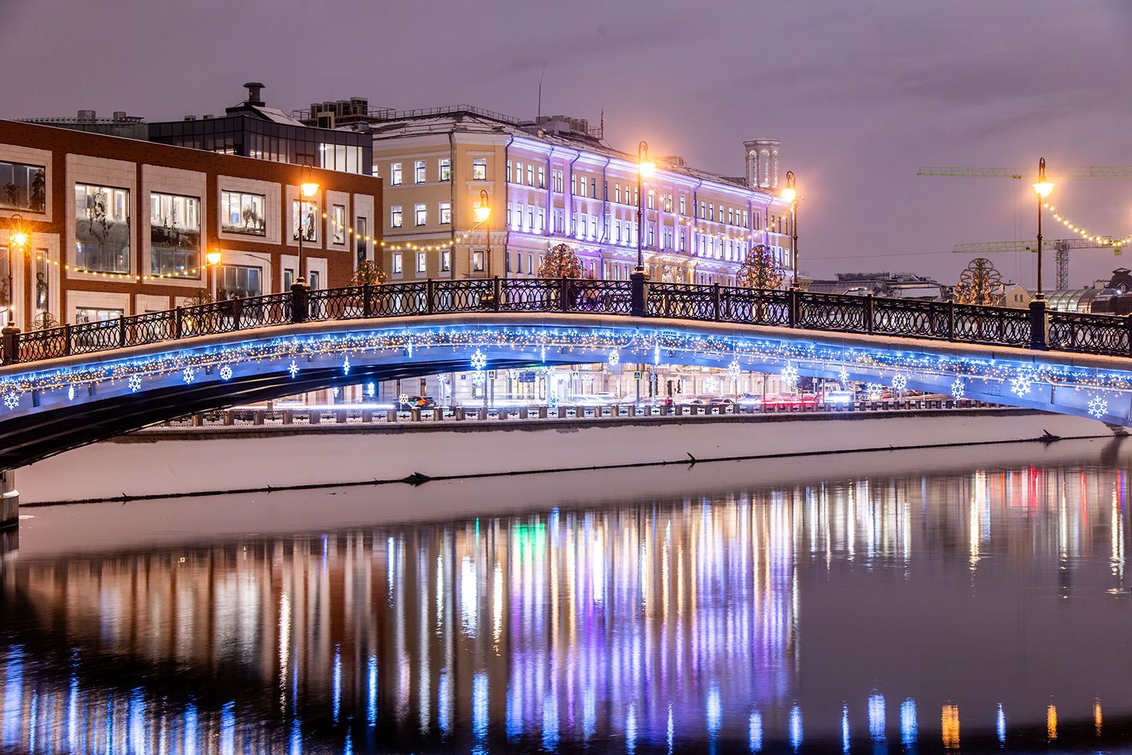 "Традиционно столицу украсили к новогодним и рождественским праздникам — по всему городу установили световые декоративные конструкции, создающие особую атмосферу и служащие дополнительным источником освещения в темное время суток. Специалисты АО 'Объединенная энергетическая компания' отдельно украсили мосты города, включая Большой Каменный, Большой Москворецкий, Бородинский, Новоарбатский, Чугунный, Садовнический, Третьяковский и парящий мост в парке 'Зарядье'", — отметил Петр Бирюков.