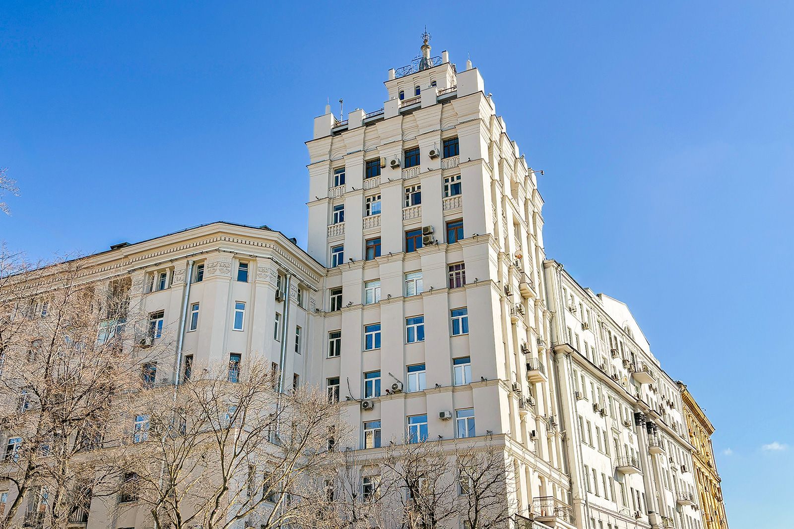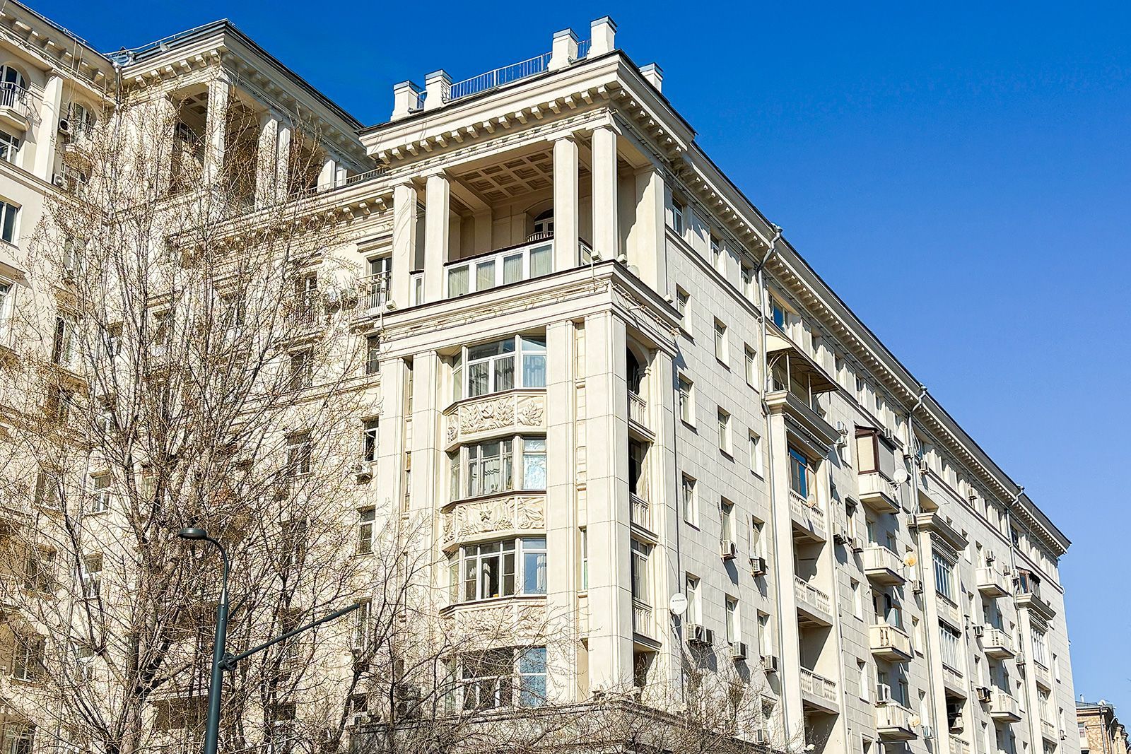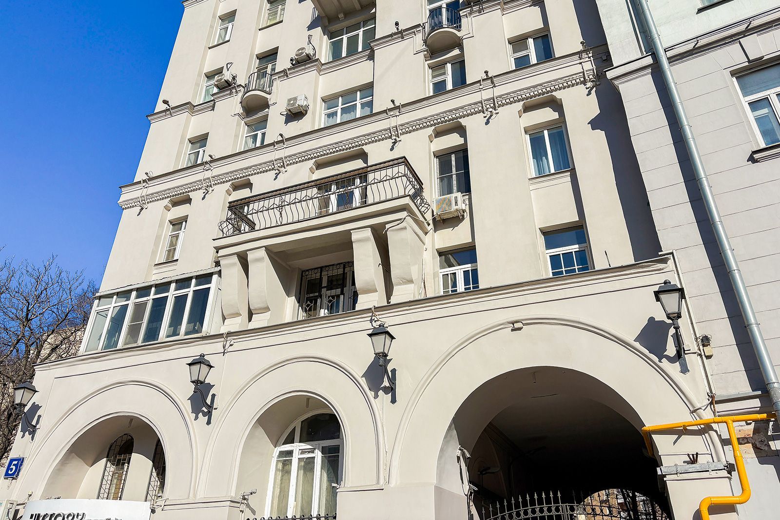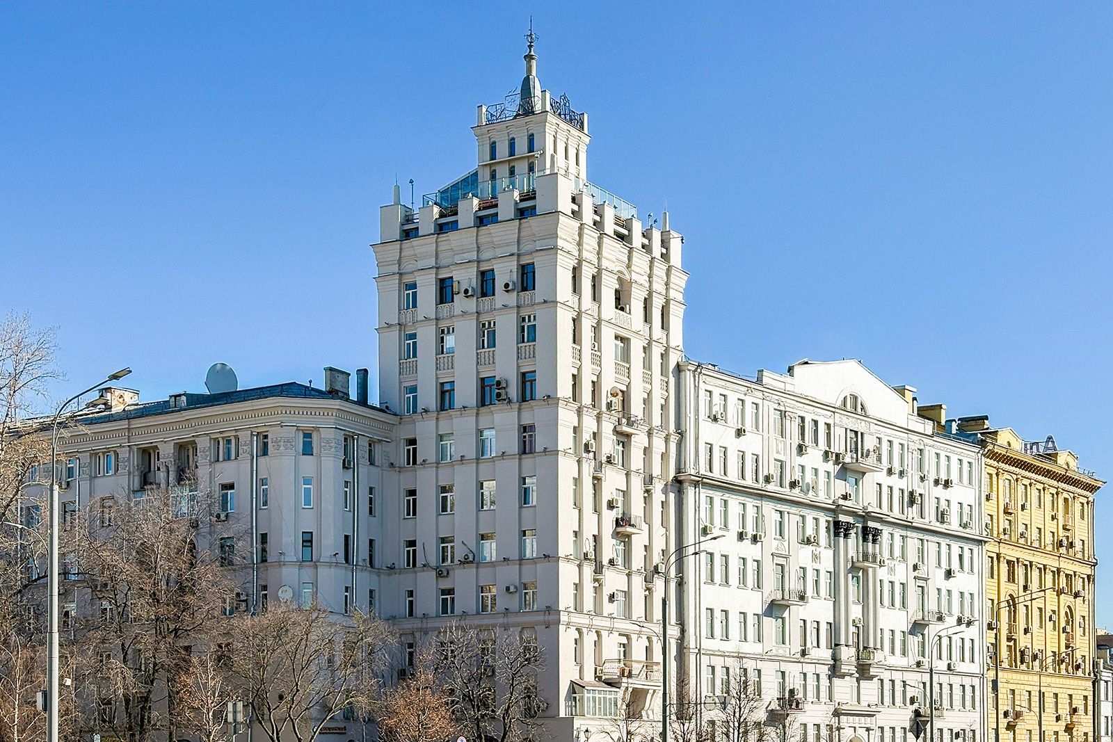 В 2025 году также обновили здание, великолепно выполненное в стиле советской неоклассики, расположенное на улице Садовой-Самотечной, дом 5. Дом, построенный в 1951 году по проекту архитектора Михаила Жирова, отличается переменной этажностью — от семи до тринадцати этажей. У дома сложная планировка и декоративное украшение. Межоконные пилястры, тянущиеся от земли до крыши, формируют структуру фасада, дополненного богатой лепниной. Особенность дома — башня с пинаклем и металлической ажурной решеткой. Трехарочное основание, состоящее из двух этажей, завершается мощным балконом на консолях. По периметру расположены венчающий карниз с дентикулами и межэтажные карнизы.