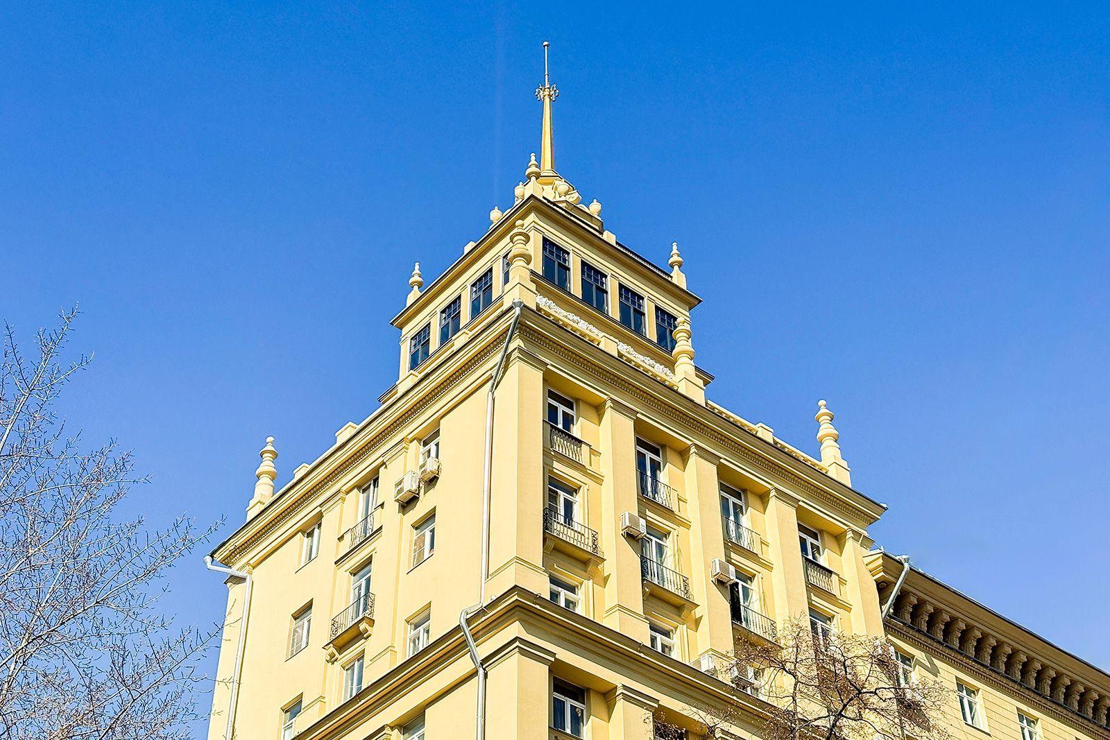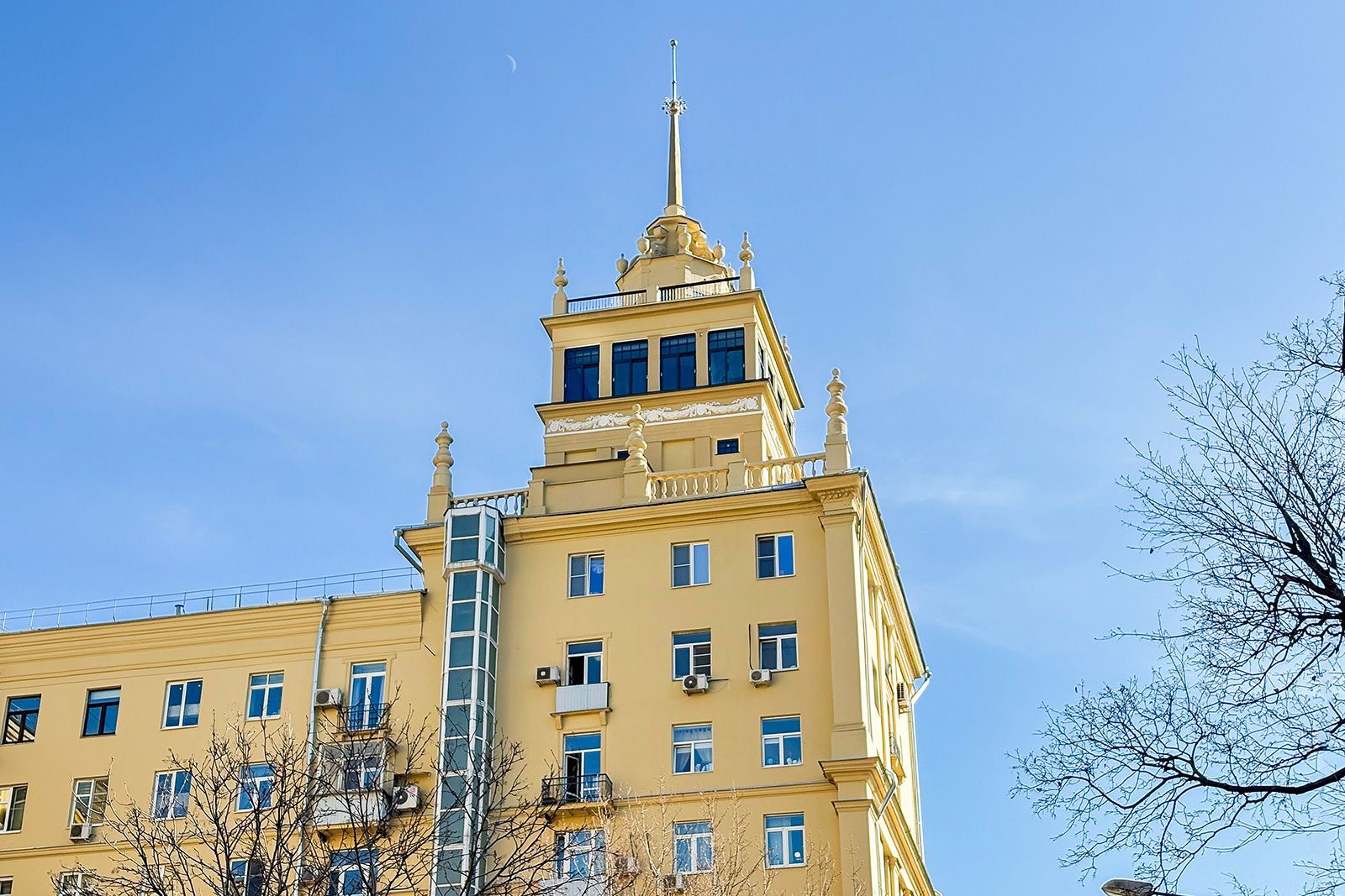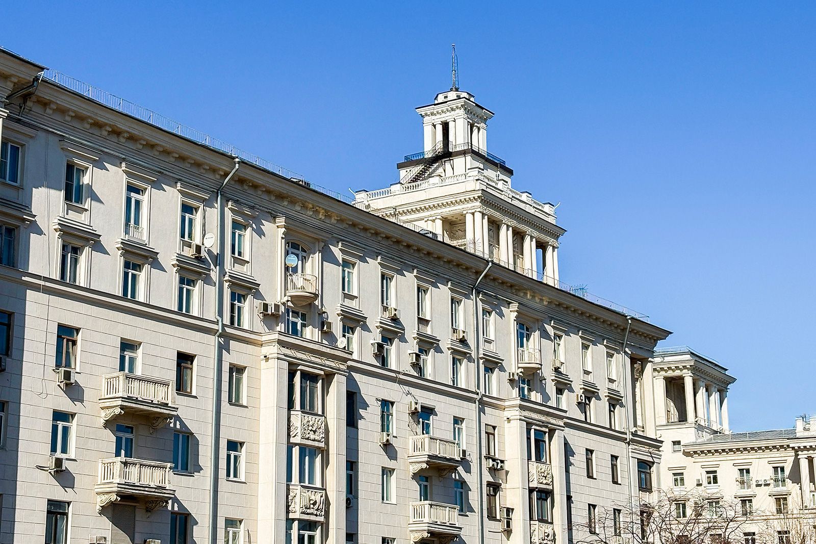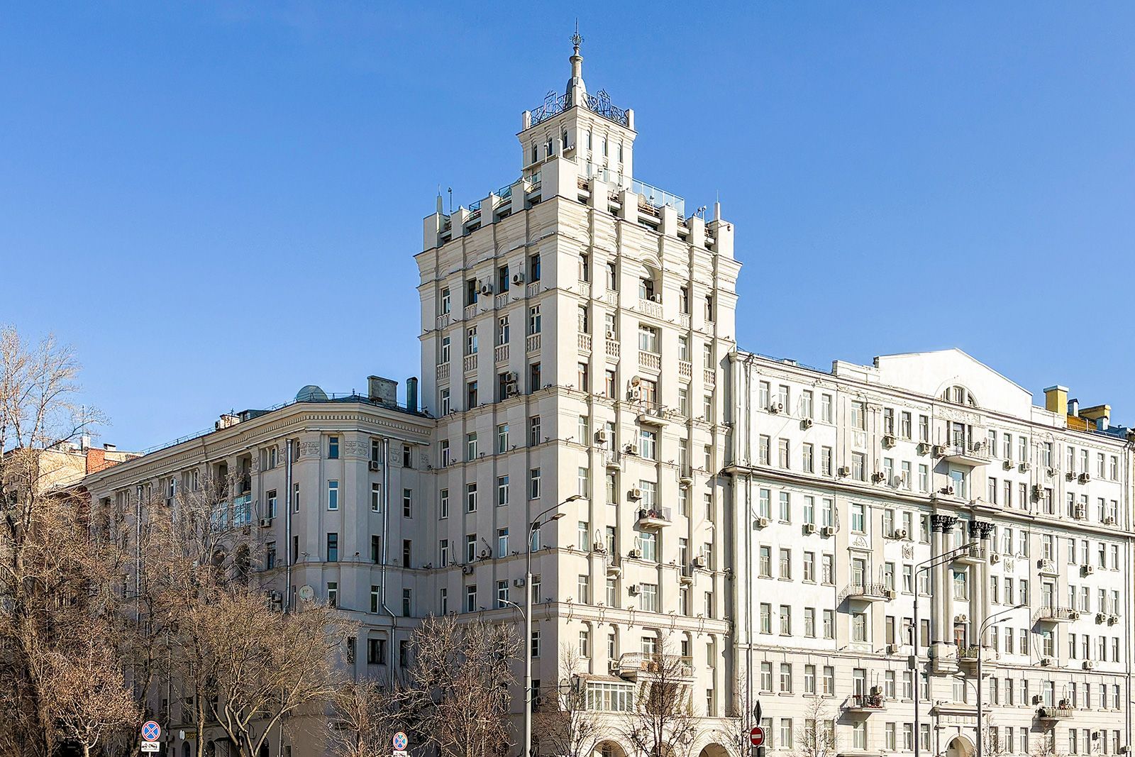 В 2025 году также обновили здание, великолепно выполненное в стиле советской неоклассики, расположенное на улице Садовой-Самотечной, дом 5. Дом, построенный в 1951 году по проекту архитектора Михаила Жирова, отличается переменной этажностью — от семи до тринадцати этажей. У дома сложная планировка и декоративное украшение. Межоконные пилястры, тянущиеся от земли до крыши, формируют структуру фасада, дополненного богатой лепниной. Особенность дома — башня с пинаклем и металлической ажурной решеткой. Трехарочное основание, состоящее из двух этажей, завершается мощным балконом на консолях. По периметру расположены венчающий карниз с дентикулами и межэтажные карнизы.