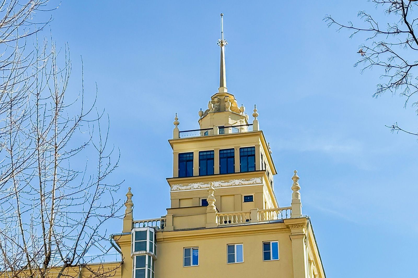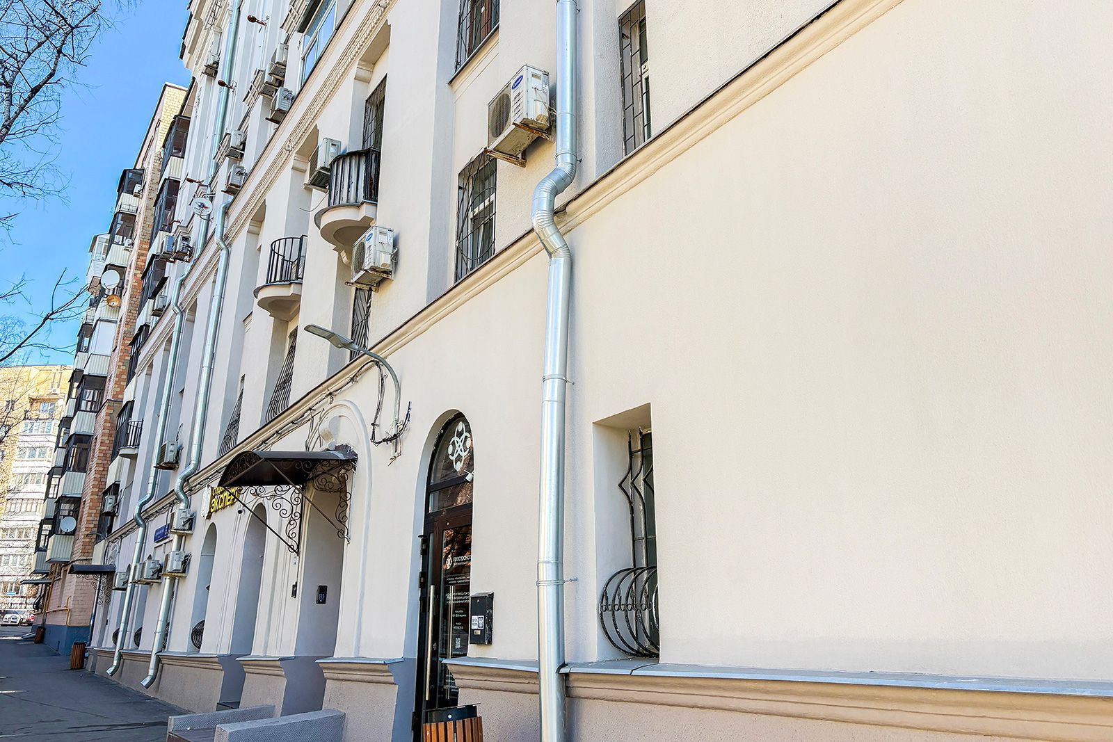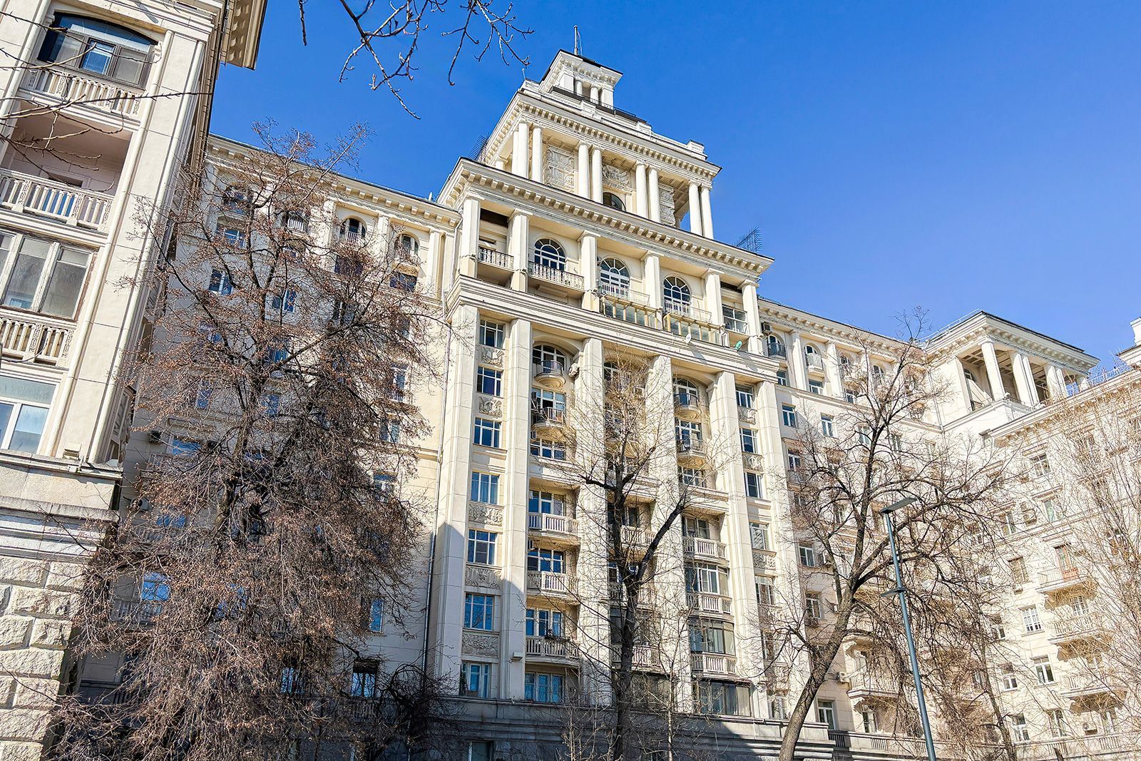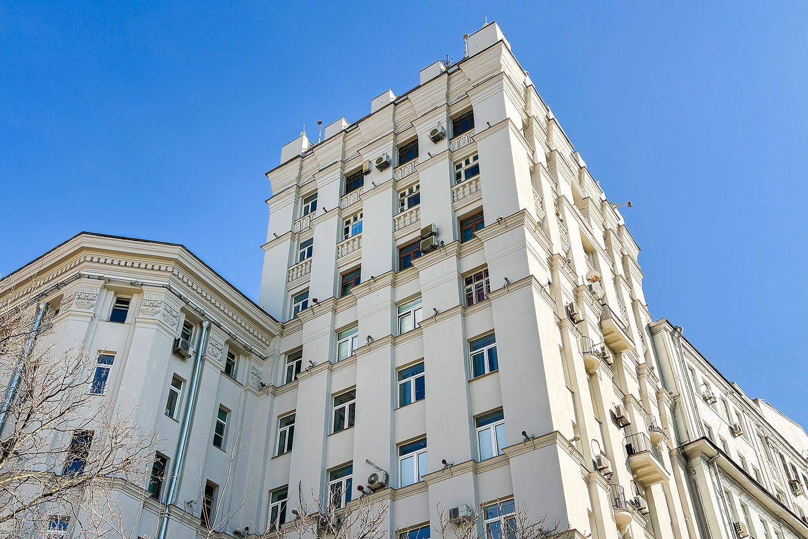 В 2025 году также обновили здание, великолепно выполненное в стиле советской неоклассики, расположенное на улице Садовой-Самотечной, дом 5. Дом, построенный в 1951 году по проекту архитектора Михаила Жирова, отличается переменной этажностью — от семи до тринадцати этажей. У дома сложная планировка и декоративное украшение. Межоконные пилястры, тянущиеся от земли до крыши, формируют структуру фасада, дополненного богатой лепниной. Особенность дома — башня с пинаклем и металлической ажурной решеткой. Трехарочное основание, состоящее из двух этажей, завершается мощным балконом на консолях. По периметру расположены венчающий карниз с дентикулами и межэтажные карнизы.