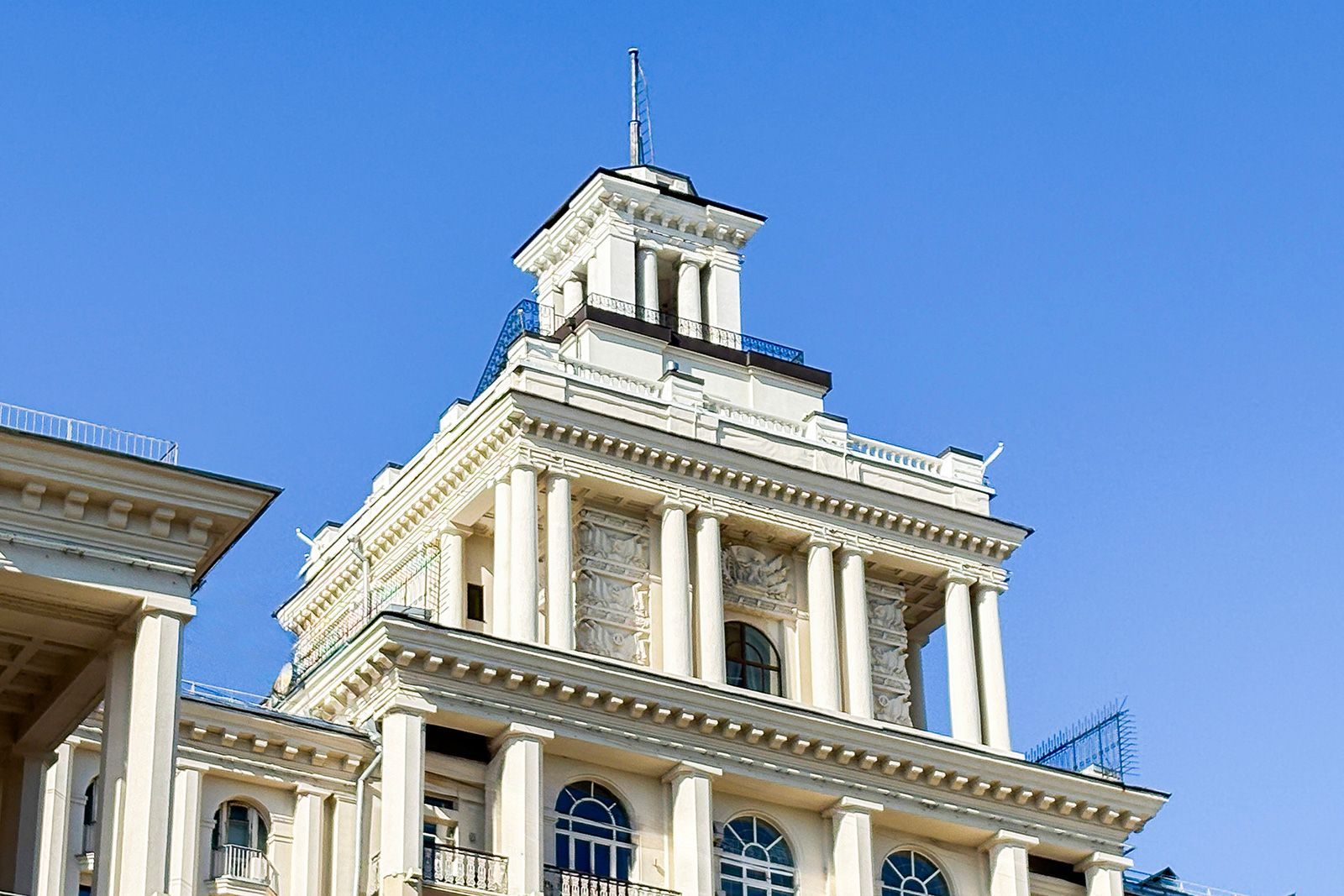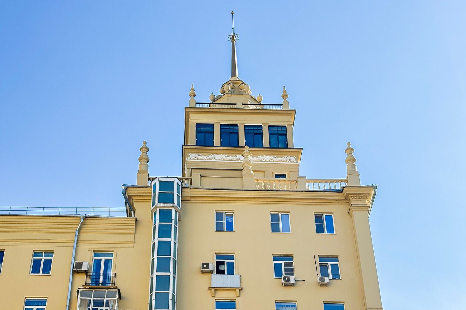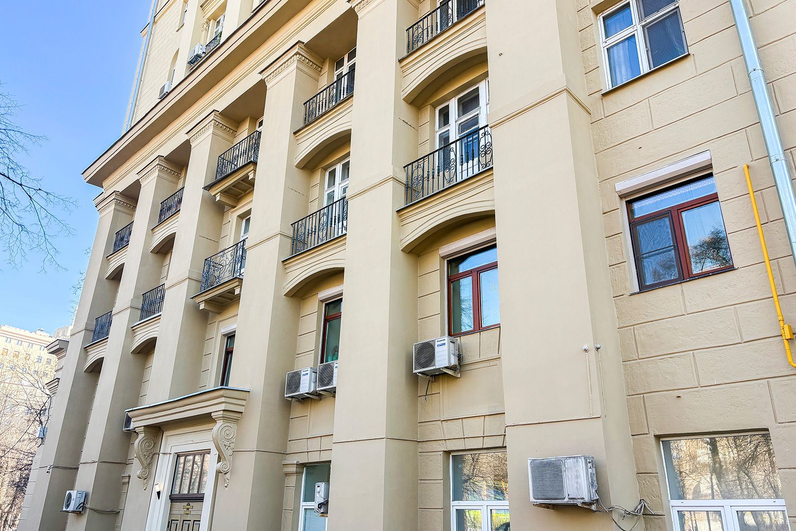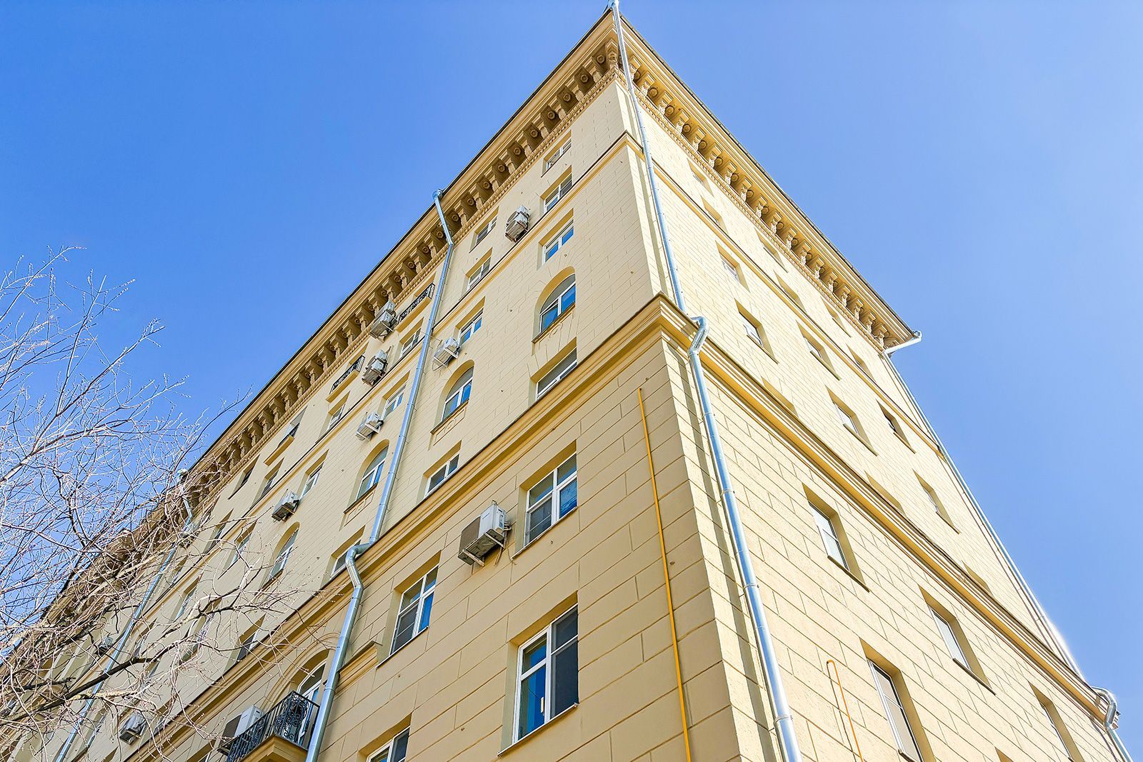 В 2025 году также обновили здание, великолепно выполненное в стиле советской неоклассики, расположенное на улице Садовой-Самотечной, дом 5. Дом, построенный в 1951 году по проекту архитектора Михаила Жирова, отличается переменной этажностью — от семи до тринадцати этажей. У дома сложная планировка и декоративное украшение. Межоконные пилястры, тянущиеся от земли до крыши, формируют структуру фасада, дополненного богатой лепниной. Особенность дома — башня с пинаклем и металлической ажурной решеткой. Трехарочное основание, состоящее из двух этажей, завершается мощным балконом на консолях. По периметру расположены венчающий карниз с дентикулами и межэтажные карнизы.